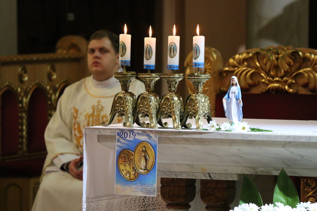 Homilię wygłosił ks. Radosław Pawłowski CM, który nawiązując do Ewangelii, wskazał rolę Maryi podczas wesela w Kanie Galilejskiej. – Dobra matka nie dyryguje dzieckiem, nie rozkazuje, nie narzuca mu czegokolwiek, ale jest obecna, czuwa, wychodzi naprzeciw, doradza, podpowiada, zaradza potrzebom, jeśli trzeba, delikatnie upomina. Wino nie jest konieczne do życia, bez wina można żyć. Jednak brak wina na weselu to brak radości. A w Biblii wino symbolizuje właśnie radość. Mówi o nim, że rozwesela serce człowieka. Maryja ukazuje swojemu Synowi to wszystko, co choćby w najmniejszym stopniu człowieka smuci, przygnębia, co odbiera mu radość życia. Sama nie zaradza ludzkim brakom i potrzebom, choć prawdopodobnie mogłaby – powiedział kapłan. Wspomniał, że wg św. Ludwika Marii Grignion de Montfort Maryja miała dar czynienia cudów, jednak była pokorna wobec Syna. Wskazał, że Maryja zachęca innych, by zaufali Jezusowi jednocześnie sama bezgranicznie Mu ufa. – Zdanie Niepokalanej „zróbcie wszystko, cokolwiek wam powie”. Zauważmy, w tym jednym zdaniu, dwa wyrażenia podkreślają wielkość zaufania Maryi. Zróbcie wszystko i zróbcie cokolwiek. Wydaje się, że zdanie to stanowi sedno pobożności maryjnej. Bo kiedy my prosimy Maryję o cokolwiek, ona również kieruje prośbę do nas: „zróbcie wszystko, cokolwiek wam powie mój Syn”. Nasza rozmowa z Maryją jest więc wymianą próśb naszych i jej. To, co chcemy uzyskać od Maryi musi być zawsze zgodne z wolą jej Syna – zaznaczył kapłan podkreślając, że najmilszą służbą dla niej jest wstawianie się za nami. – Wyraziła to w roku 1830 w kaplicy Sióstr Szarytek w Paryżu objawiając św. Katarzynie Labouré medal z napisem „O Maryjo bez grzechu poczęta, módl się za nami, którzy się do Ciebie uciekamy!”, nasz Cudowny Medalik. Pierwsza część tej modlitwy zwanej inwokacją, czyli zawołaniem, ukazuje, że Niepokalane Poczęcie, do słowa „o Maryjo bez grzechu poczęta” jest dla Maryi największym przywilejem łaski Bożej wobec niej i po Bożym rodzicielstwie największym przywilejem, z którego wywodzą się wszystkie pozostałe. Natomiast druga część inwokacji „módl się za nami” dowodzi, że Matka Boża chce, powiem więcej, Matka Boża pragnie wstawiać się za nami. Wreszcie trzecia część tego krótkiego, objawionego przez Maryję zdania, „którzy się do ciebie uciekamy”, mówi nam bardzo wyraźnie, wzywa wręcz, uciekajcie się do mnie módlcie się do Boga za moim wstawiennictwem. Niczego, co dobre dla was mój Syn wam nie odmówi, gdy ja go poproszę – mówił ks. Radosław. Dodał, że cuda zdarzają się, ale muszą mieć poparcie w wierze i zaufaniu w Bogu. Zaznaczył, że człowiek musi również wykonać własną pracę i wysiłek. – Moc Jezusa nie zastępuje człowieka w jego wysiłku, w jego pracy, czy w jego zaangażowaniu. Tam gdzie pracę może wykonać człowiek, Jezus zostawia mu pole do działania. Cuda Jezusa nie są sztuczkami, dzięki którym możemy żyć łatwiej i wygodniej. Mnożenie każdej godziwej ludzkiej pracy jest bezsensowne, jeżeli nie zostaje ona powierzona najpierw i oddana Bogu. Nawet największe ilości wody nigdy same z siebie nie uczynią choćby jednej kropli wina. Zauważmy w tej Ewangelii prostą zależność pomiędzy ilością wody przyniesionej przez sługi i ilością wina otrzymanego po jej przemienieniu. Jezus przemienił w wino tyle wody, ile znajdowało się w stągwiach. Ani więcej, ani mniej. Jeżeli nie raz całymi latami w naszym życiu duchowym niewiele się dzieje, jeżeli nie wzrastamy wewnętrznie, to być może dlatego, że brakuje naszego pełnego zaangażowania we współpracę z Bożą łaską, naszej pracy naszego wysiłku hojnego i wytrwałego noszenia wody – podkreślał kapłan. Zachęcał zgromadzonych by rozwijali się na comiesięcznych spotkaniach oraz na modlitwie, by wypracowali swoją własną drogę do zbawienia