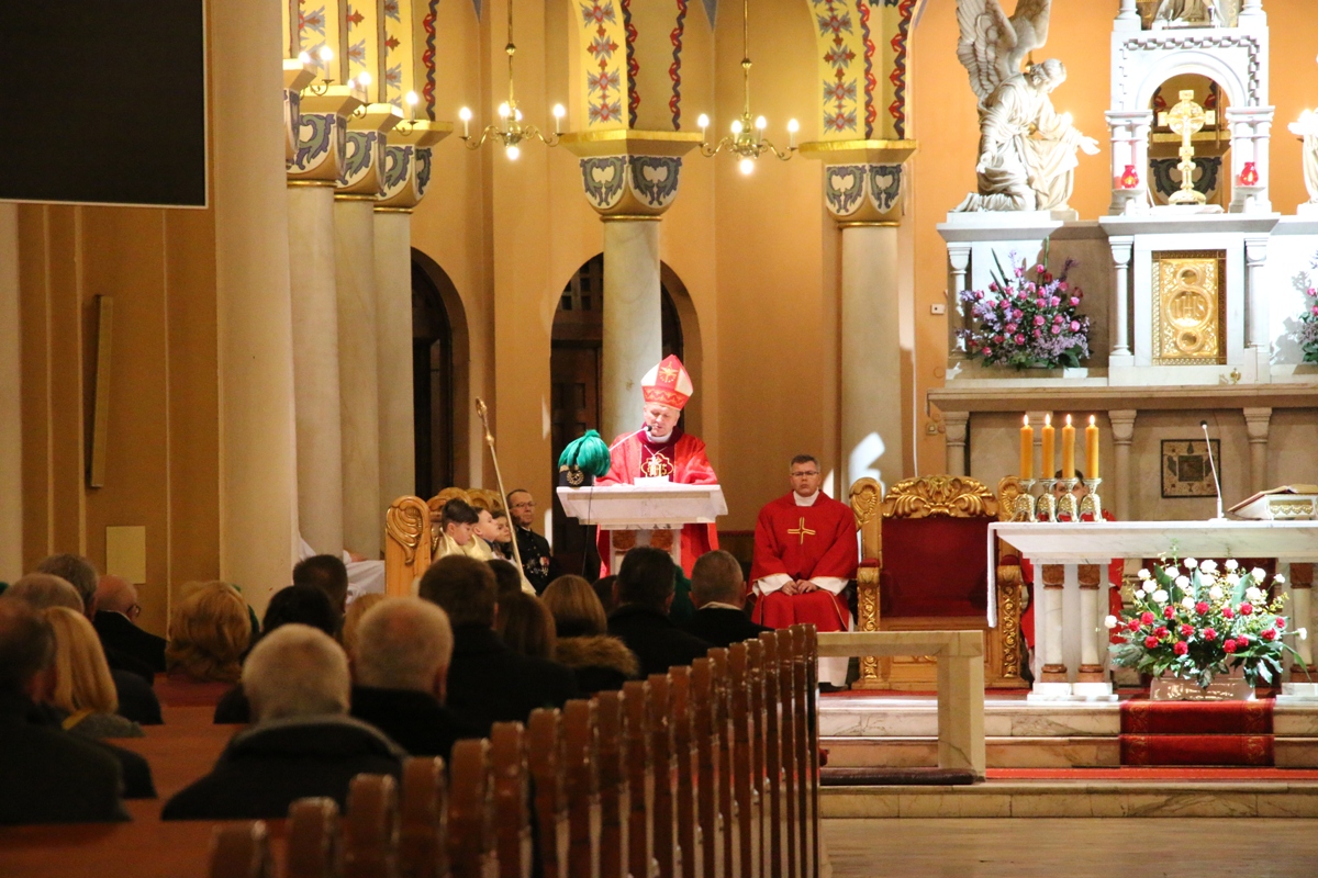 W homilii biskup pomocniczy diecezji kaliskiej zauważył, że przywołując wstawiennictwa patronki górników, św. Barbary, wchodzimy już w czas Adwentu, który jest czasem łaski i czuwania, czasem radosnego oczekiwania na przyjście Pana. Podkreślał, że szczególnie w tym czasie powinniśmy rozeznawać, co jest dla nas dobre a co złe. – Nasze spotkanie ma charakter religijny i patriotyczny. Taka jest prawda. Tak jak górnictwo i cała infrastruktura związana z węglem w Polsce jest pomimo ciągłych przemian jakimś gwarantem naszego bezpieczeństwa energetycznego, a więc ma charakter patriotyczny. Jest też odpowiedzią na Słowo Boże, które mówi: „Czyńcie sobie ziemię poddaną”, co nie było i nie jest zachętą do tego by człowiek wykorzystywał i eksploatował tylko zasoby ziemi, ale jest jakimś wypełnieniem Bożego planu i zamiaru wobec człowieka i całego stworzenia – powiedział bp Buzun. Biskup podkreślił jakie zmiany wywarł węgiel w gospodarce. Wskazał, że przez wykorzystanie węgla w Polsce mamy ciepło i energię elektryczną. Dzięki temu możemy korzystać z maszyn i urządzeń. – Dziękujemy Panu Bogu za dary tej ziemi, za dar węgla, za całe przetwórstwo, za „Węglozbyt”, który trudni się przemieszczaniem i dostarczaniem tego surowca do różnych miejsc. Z tego surowca czerpiemy światło i ciepło materialne, ale z drugiej strony każdy z nas, kim by nie był, potrzebuje światła i ciepła Bożego, potrzebuje światła Ducha Świętego. Dlatego w tej Adwentowej postawie czuwania nad sobą i nad sprawami gospodarczo-społecznymi, nad górnictwem niech nas umacnia Duch Święty – mówił bp Łukasz. Zachęcał by wypraszać u Ducha Świętego dar odnowy oblicza ziemi oraz relacji międzyludzkich z darem miłości. – Dzisiaj zwracamy się do patronki wszystkich górników i nie tylko, tych wszystkich, którzy się trudzą przy wydobyciu węgla i jego rozprowadzaniu, św. Barbary, aby ona, która miała w sobie i rozwinęła dar męstwa, która była pełna światła Bożego, miała w sobie Boże ciepło, by wypraszała nam otwartość na działanie Ducha Świętego w naszej codzienności – powiedział bp Łukasz Buzun.