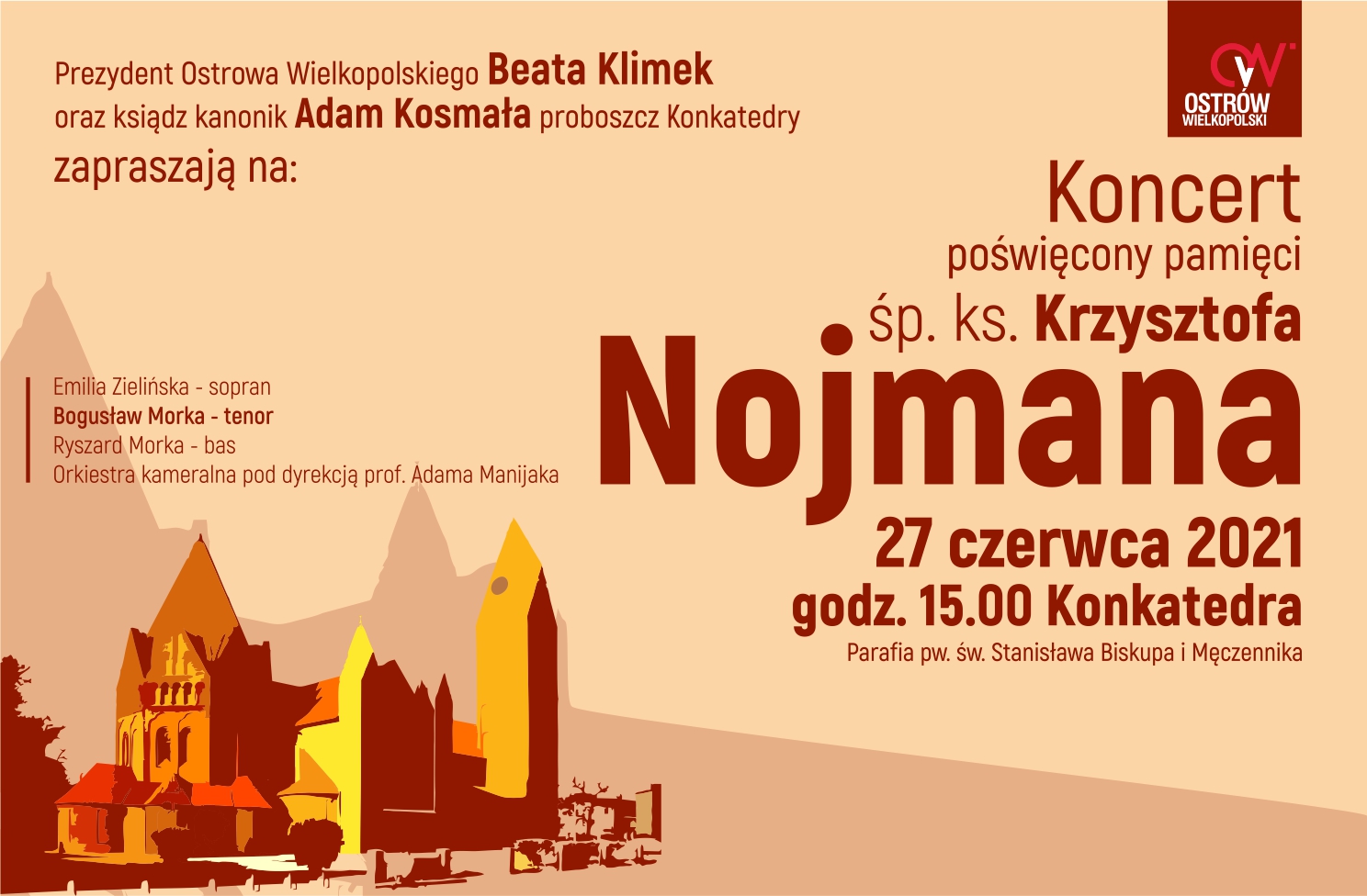 Koncert zorganizowano by uczcić pamięć zmarłego nagle ks. kan. Krzysztofa Nojmana. Ks. Krzysztof w Poniedziałek Wielkanocny trafił do szpitala, gdzie zdiagnozowano u niego zarażeniem koronawirusem SARS-CoV2. Jego śmierć 14 kwietnia 2021 r. poruszyła Ostrowian i mieszkańców naszej diecezji. Ks. Nojman przeżył 55 lat. Zmarł w 31. roku kapłaństwa, 6. roku posługi proboszcza parafii konkatedralnej.