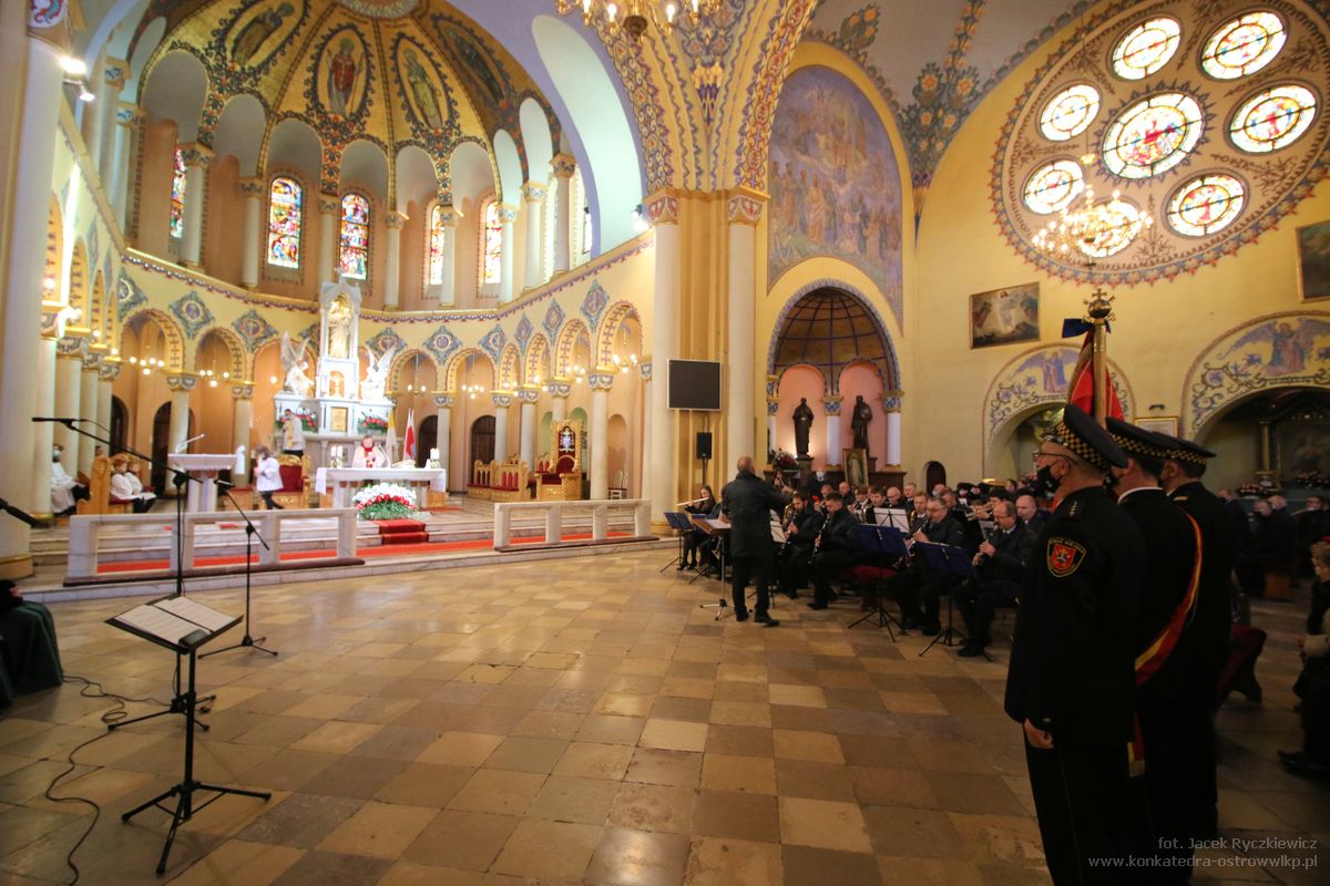 Msza św. odprawiona została o godz. 10.00 w Konkatedrze, którą celebrował ks. kan. Adam Kosmała, proboszcz parafii. – Z wielką radością ofiaruję tę Mszę św. za naszą Ojczyznę w Narodowe Święto Niepodległości, za Polskę, wszystkich Polaków w Polsce i za granicą, mieszkających blisko i daleko. W szczególności modlę się za wszystkich mieszkańców naszego miasta Ostrowa Wielkopolskiego i okolic – mówił kapłan witając wszystkich zebranych.