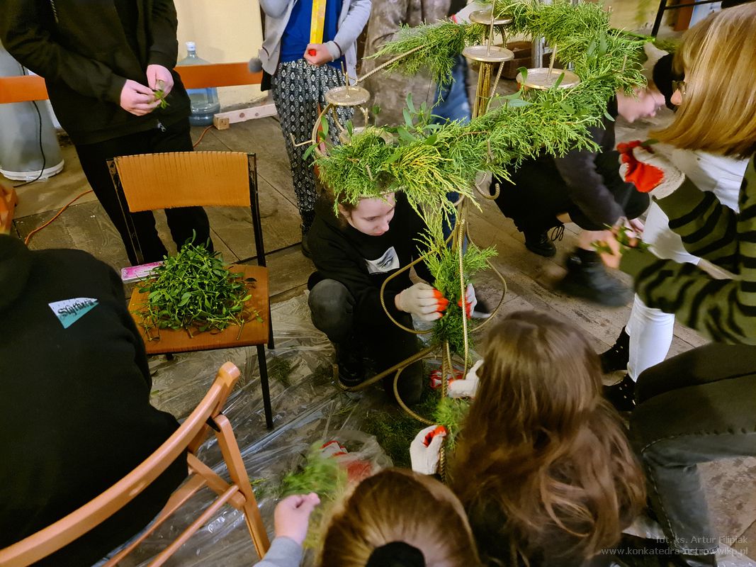 Młodzież wraz z ks. Arturem przygotowała również stroiki na wigilijny stół, które będzie można zakupić od najbliższej niedzieli. Środki ze sprzedaży stroików zostaną przeznaczone na powstającą przy naszej parafii świetlicę dla młodzieży.