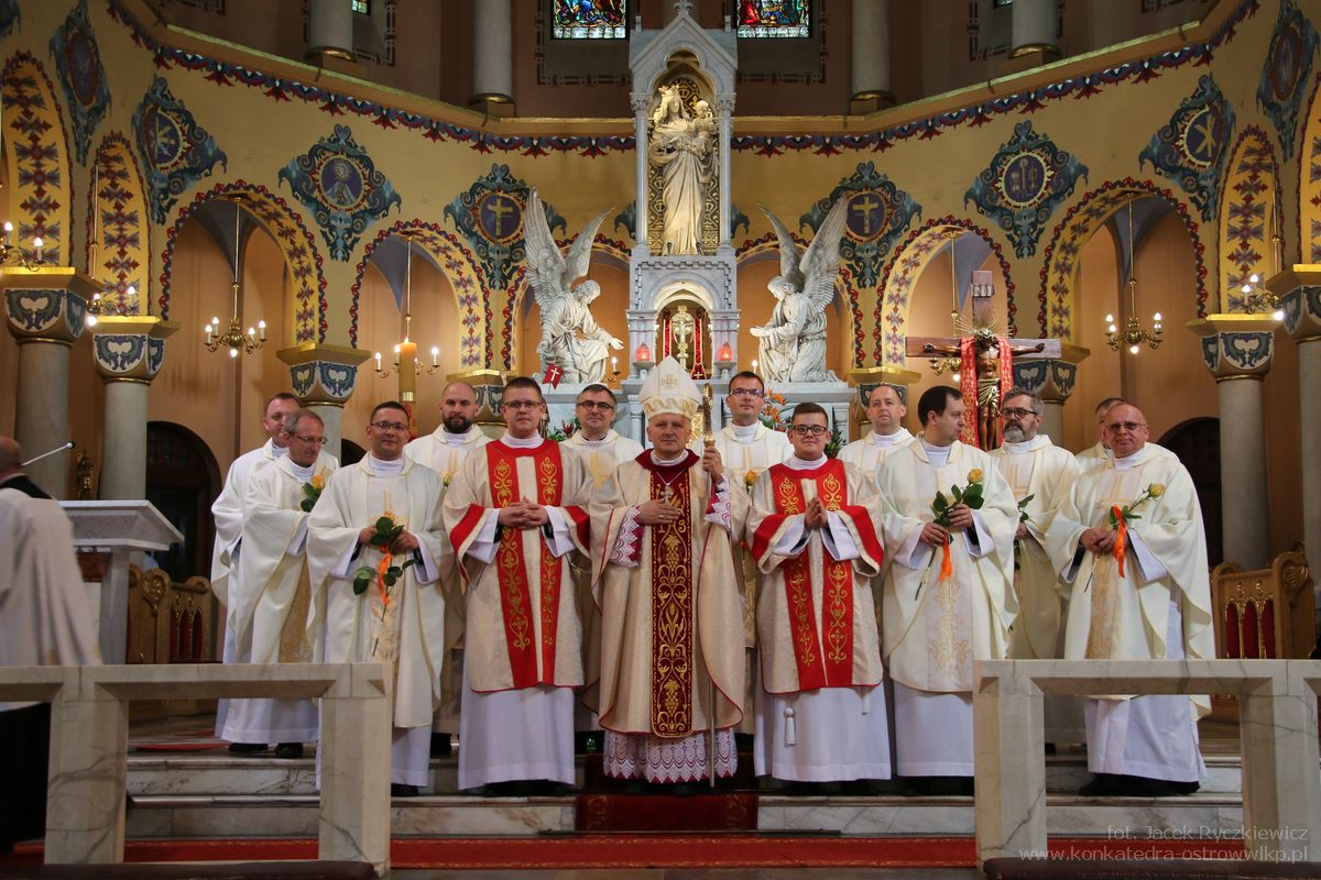 Biskup Łukasz w homilii przypomniał do czego powołani byli diakoni w początkach w Kościoła. Wspomniał również pierwszych diakonów. – Dzisiaj jesteśmy w Konkatedrze w Ostrowie Wielkopolskim, która nosi znamienny tytuł św. Stanisława biskupa męczennika. Patron naszej Ojczyzny, i tego miejsca. W ślady pierwszych diakonów wchodzą nasi klerycy. Już nie Szczepan, ani Mikołaj z Antiochii, ale Adrian i Mateusz – mówił biskup. Podkreślał, że rolą diakona jest służyć drugiemu człowiekowi. – Dzisiaj stajemy przed Panem, otaczamy naszych diakonów modlitwą – zaznaczył bp Łukasz. Życzył diakonom, by ich serce było dobrym miejscem dla Boga. – Ta droga formacji, którą już przeszli przygotowała ich do tego. Ale to dopiero początek – podkreślił. Zachęcał, by służba i misja, w której będą się znajdować, prowadziła ich w kierunku Boga i każdego człowieka, którego spotkają na swojej drodze.
