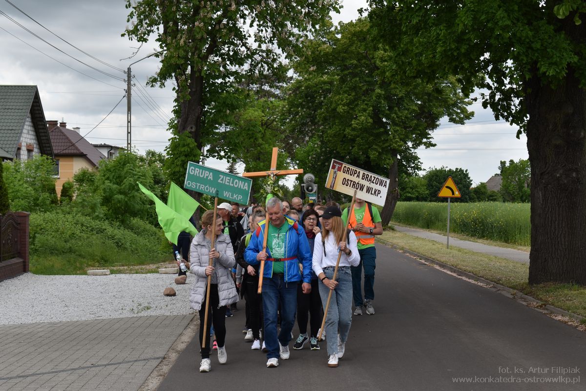 Pielgrzymka po raz siódmy, po dwuletniej przerwie spowodowanej pandemią, rozpoczęła się na ostrowskim Rynku, gdzie o godz. 10.00 pątnicy wyruszyli na szlak. Z serca miasta udali się w kierunku Wysocka Wielkiego. Godzinną przerwę spędzili przy kościele pw. Podwyższenia Krzyża Świętego w Wysocku. Stamtąd udali się do Sadowia. Na wzgórzu klasztornym Ojców Pasjonistów pielgrzymi odprawili na Golgocie drogę krzyżową. Pątników w imieniu przeora i proboszcza powitał o. Jakub Gis CP, który przedstawił historię klasztoru w Sadowiu. Punktem kulminacyjnym była Eucharystia sprawowana przez przewodników obu grup ks. Pawła Gomółki oraz ks. Artura Filipiaka.