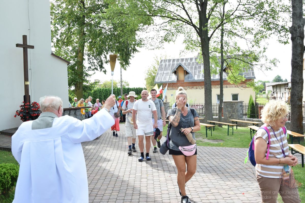 Trzeci dzień pielgrzymki na Jasną Górę grupy Zielonej rozpoczął się od uczestnictwa w Mszy Świętej z parafianami w Walichnowach. Następnie, adorując Pana Jezusa, wyruszyli na kolejny etap drogi. Nasza grupa jak zawsze pełna energii i zapału, łączy modlitwę z radosnym przebywaniem razem. Zieloni jak zawsze zostali mile przyjęci przez gospydynie z Białej. Dziś pątnicy wkroczyli do Archidiecezji Częstochowskiej. Dąbrowa gościła ich w wyjątkowy sposób. Przyłączyli się do obchodów odpustu ku czci św. Wawrzyńca, patrona tamtejszej parafii. Nasi najmłodsi pielgrzymi mogli skorzystać z licznych atrakcji przygotowanych na tę okazję. Nie zabrakło tradycyjnych cukierków i błogosławieństwa wodą święconą od pana kościelnego Stasia. Dziś też do grupy Zielonej dołączyła siostra Ancilla z naszego klasztoru Sióstr Klarysek Kapucynek przy ul. kard. Dalbora. Pielgrzymi szlak dnia trzeciego zakończył się w Kamionce. Tam też tradycyjnie gospodarze przygotowali ognisko, gdzie Zieloni mogli spędzić wieczór. Była też okazja do świętowania – urodziny dziś ma Klara z muzycznych.