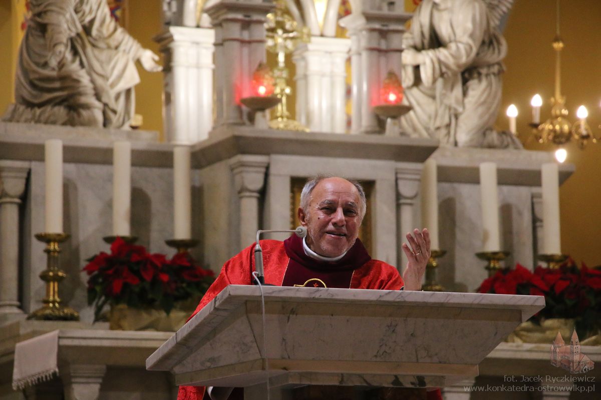W homilii o. Ryszard podzielił się historią swojego powołania i życia kapłańskiego. Wspominając swoje dzieciństwo i młodość, mówił o chwilach, które zadecydowały o jego życiowej drodze. – W ósmej klasie spojrzałem na plakat: „Misjonarze Oblaci Maryi Niepokalanej przyjmują”. Było też takie zdjęcie czarno-białe, bo to jeszcze tamte czasy, i był misjonarz z krzyżem, a na dole było napisane „Ubogim głosić Ewangelię”. Posłał mnie Pan i dziś z perspektywy prawie 50. lat kapłaństwa mogę powiedzieć, że w sekundzie, w dwóch, usłyszałem, że mam iść za Nim – mówił. Zachęcał wiernych, by ich wiara była żywa i autentyczna. – Jego Słowo, kiedy nam zaczyna smakować, to wiara się zaczyna. Nam ma smakować Słowo Boże, Msza święta – podkreślał o. Sierański. Niezważając na swoje życiowe doświadczenia zachęcał by być pełnym radości i nigdy nie wątpić. – Mamy różne sytuacje życiciowe. Niektórzy noszą krzyży cierpienia i choroby, nowotwory. Dwie dziewczyny z mojej wspólnoty, młode dziewczyny, umierają. Niedługo, za parę dni je odwiedzę. Nowotwór je toczy, ale obie są jakieś pełne wiary, jakaś radość jest w nich. Więc proszę Pana żebyście nigdy nie zwątpili – apelował misjonarz. Nawiązując do postaci św. Andrzeja pokreślił, że współczesny świat potrzebuje ludzi, którzy, będą z zapałem głosić Chrystusa. Ojciec Ryszard zachęcał zgromadzonych w świątyni, aby byli artystami wiary. – Bądźcie artystami wiary. Czy masz lat 80, czy 70, 60 to w ogóle nie ma znaczenia – mówił, zachęcając do codziennej, choćby krótkiej rozmowy z Bogiem. Kończąc homilię, o. Sierański prosił by okazywać drugiemu człowiekowi miłość, nadzieję i radość, by ta postawa wzbudzała pytanie: „Skąd to światło?”.