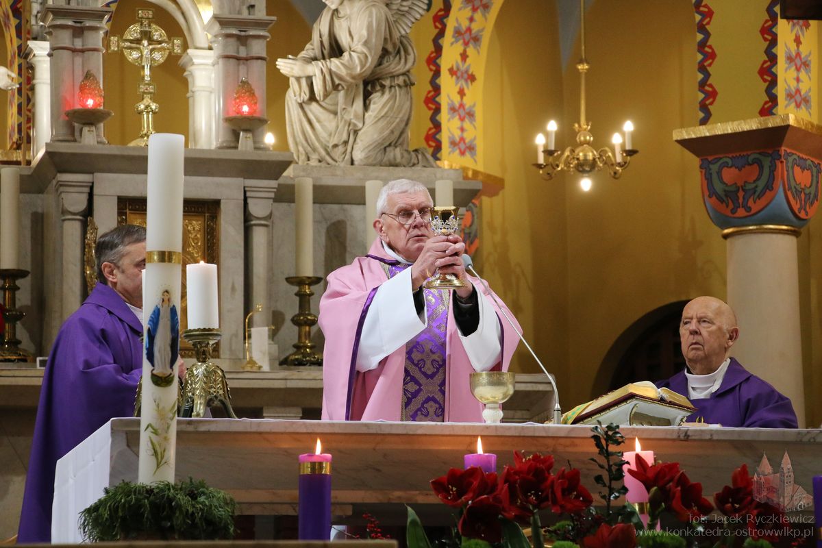 W homilii ks. Tomasz odnósł się do znaczenia pamięci o ofiarach oraz do uniwersalnych wartości chrześcijańskich i ludzkich. Zachęcał zgromadzonych do refleksji nad rolą myśli i wolności w życiu człowieka. – Trzeba zastanowić się nad równaniem, które decyduje o naszym myśleniu i o naszym życiu. Tak żyjemy jak myślimy, albo tak myślimy jak żyjemy. Ale wtedy można zatracić moc myśli, a rezygnacja z użycia rozumu to kapitulacja tego rozumu – mówił kapłan. Ks. Ilski podziękował lokalnym władzom za organizację uroczystości i podkreślił, jak ważna jest pamięć o przeszłości. – Pamięć o przodkach to nie tylko historyczna wspomnienie. Trzeba wracać myślą i modlitwą do tych bolesnych chwil. 8 listopada 1939 roku Niemcy aresztowali 27 ostrowian: uczestników Powstania Wielkopolskiego, samorządowców, przedsiębiorców, nauczycieli. 14 grudnia wywieziono ich autobusem, stanęli przed sądem. Sędziowie podpisali wcześniej przygotowane wyroki śmierci, zgodnie z prawem – przynajmniej tak jak oni to rozumieli. Niemcy wywieźli ich do lasu w Winiarach, gdzie zostali zamordowani strzałem w tył głowy – przypomniał kapłan. Wspomniał również, że wśród zamordowanych znalazł się dyrektor Katolickiego Gimnazjum, dzisiejszego I Liceum Ogólnokształcącego, gdzie uczono myślenia, odkrywano kulturę polską oraz europejską. – Wielu absolwentów tej szkoły zginęło w Dachau, Katyniu i innych miejscach kaźni — zauważył ks. Ilski. Przestrzegał przed współczesnymi zagrożeniami dla godności człowieka, cytując słowa św. Jana Pawła II wypowiedziane w Oświęcimiu 7 czerwca 1979 roku. – Wystarczy ubrać go w inny mundur, uzbroić w aparat przemocy, w środki zniszczenia, wystarczy narzucić mu ideologię, w której prawa człowieka są podporządkowane wymogom systemu – przypominał. Zauważył, że w Katolickim Gimnazjum znajduje się witraż Chrystusa Króla Zbawiciela Świata, Salvator Mundi, który w czasach okupacji i komuny był wymontowany. Witraż ten był symbolem walki o polskość podczas prześladowań w czasach Kulturkampfu. – Nie można zrozumieć człowieka bez Chrystusa i nie można zrozumieć Polski bez Chrystusa. Moje roczniki nie miały tego szczęścia zobaczyć w auli Gimnazjum, I Liceum tego witraża. Ideologia zabraniała. Dobrze, że on teraz tam jest – podkreślił ks. Tomasz, zachęcając wiernych do pięlęgnowania polskości.