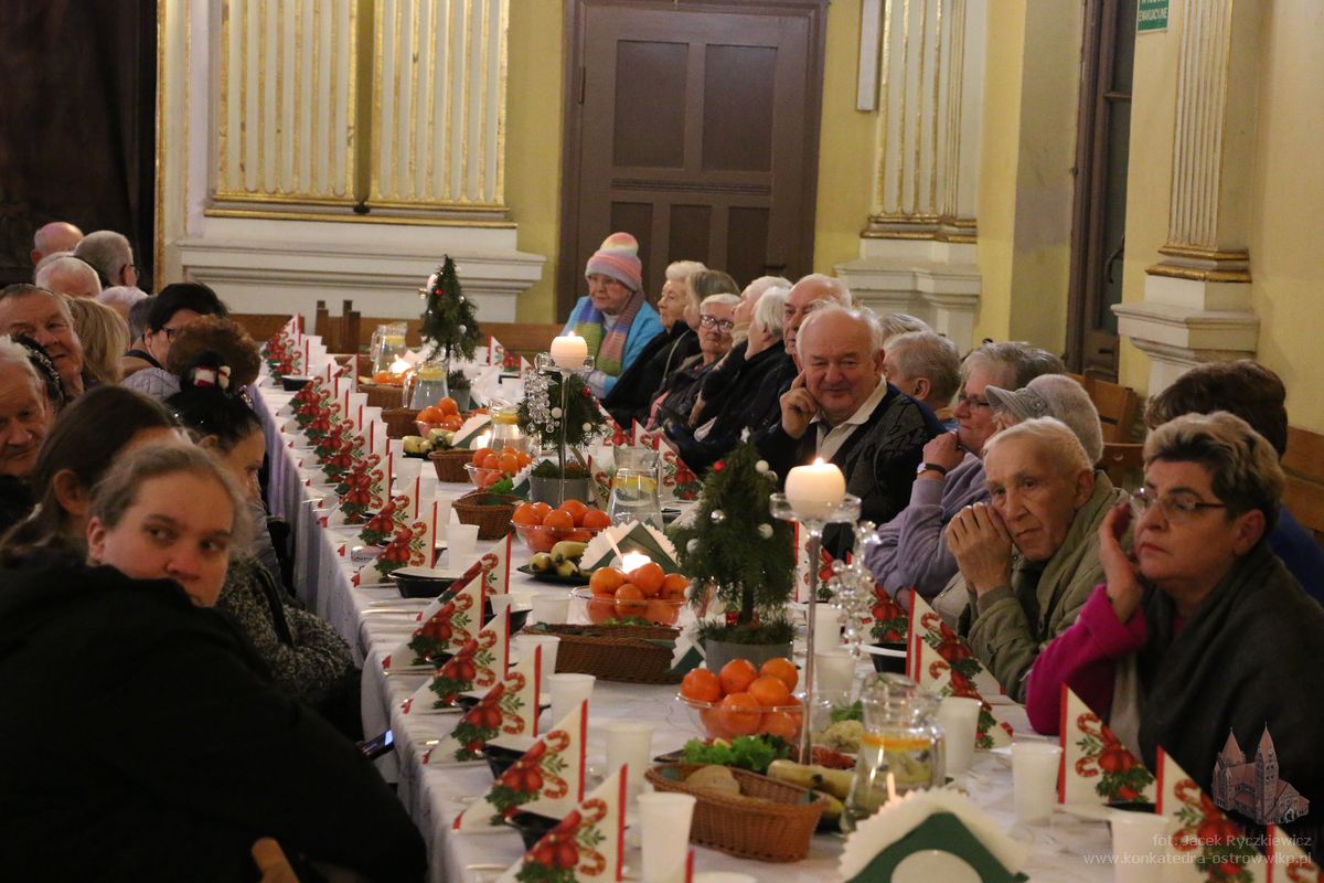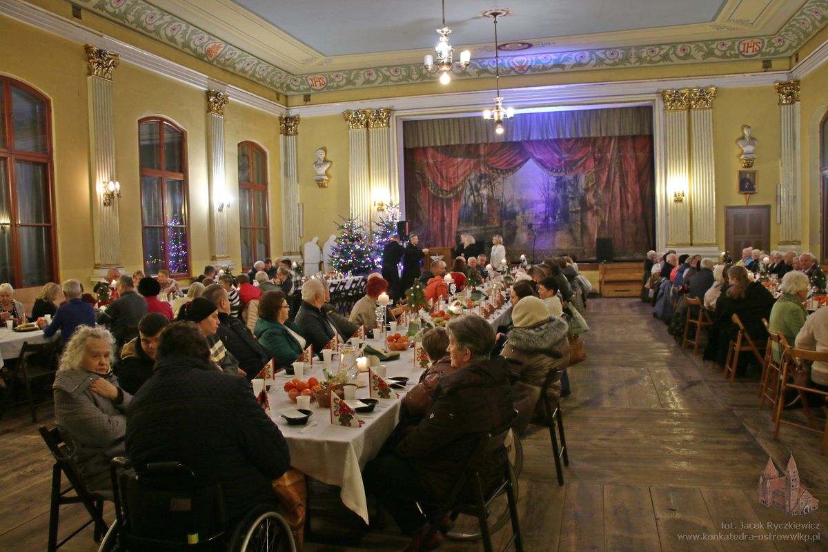 W niedzielę poprzedzającą Święta Bożego Narodzenia w dużej sali Domu Katolickiego odbyło się spotkanie wigilijne dla mieszkańców Ostrowa Wielkopolskiego. Wydarzenie zorganizowano dzięki Stowarzyszeniu Konferencji św. Wincentego a Paulo, przy pomocy Parafii Konkatedralnej oraz wsparciu finansowemu Urzędu Miasta. Przy wigilijnym stole zasiadło ponad 100 osób.