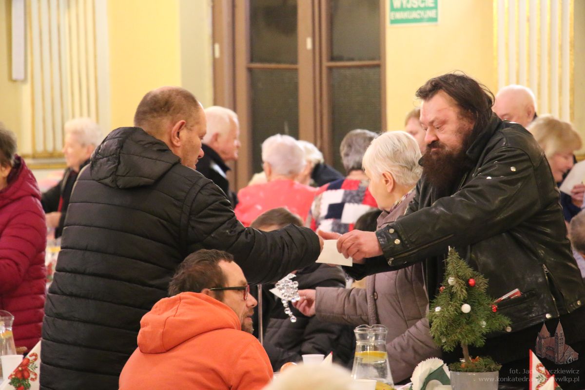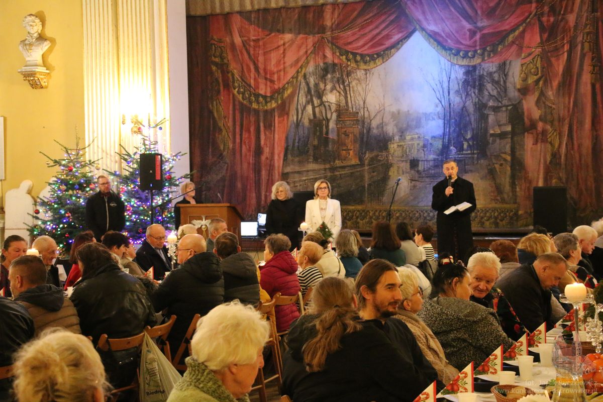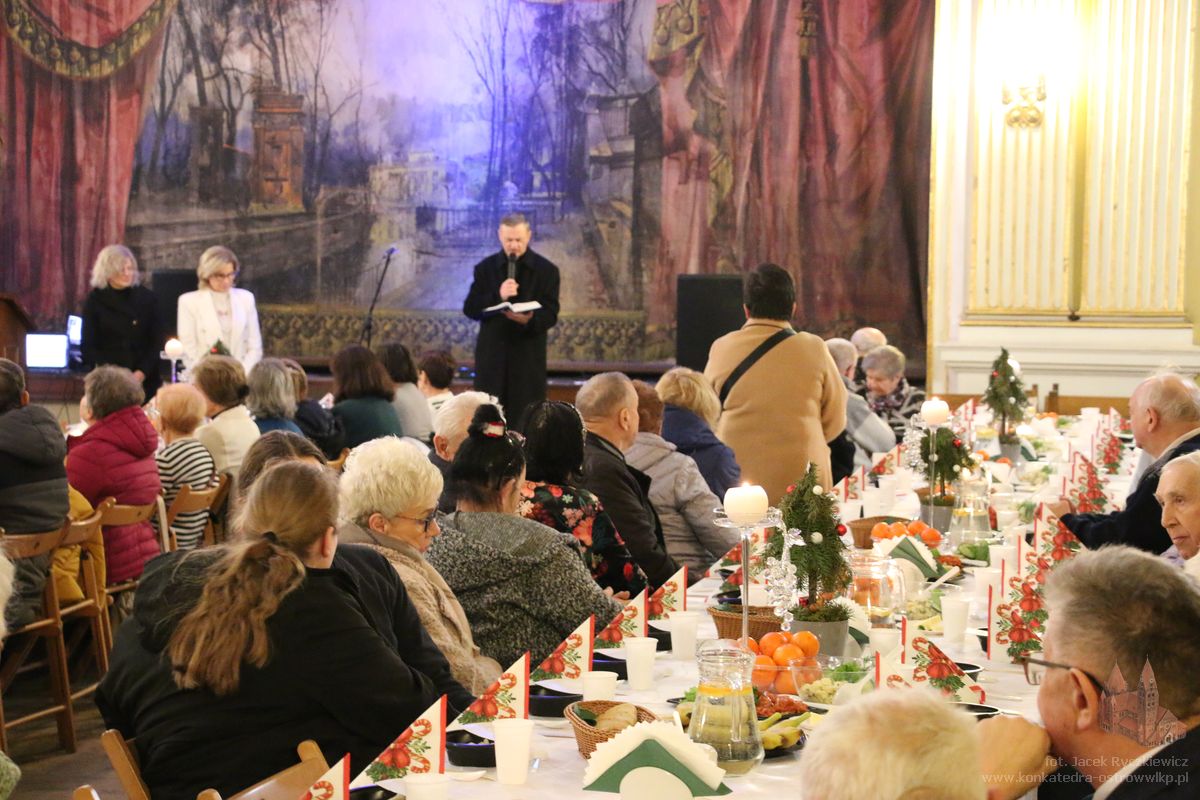 Zgromadzonych powitała przewodnicząca Stowarzyszenia Konferencji św. Wincentego a Paulo, Irena Dutkowska. Następnie głos zabrała Anna Kryjom-Korzeniewska z Referatu Profilaktyki Urzędu Miejskiego. Ks. Proboszcz Adam Kosmała złożył podziękowania za zorganizowanie spotkania oraz prosił uczestników o modlitwę, aby nie zabrakło aniołów, które co roku pamiętają o mieszkańcach. Przed posiłkiem uczestnicy przełamali się opłatkiem, a całe spotkanie umilił występ dzieci z „Bożego Podwórka” – świetlicy prowadzonej przez Stowarzyszenie Konferencji św. Wincentego a Paulo.