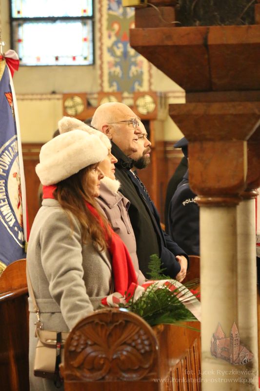 W homilii ks. Dominik Wieczorek nawiązał do doświadczenia domu rodzinnego, który dla wielu pokoleń Polaków był symbolem bezpieczeństwa, jedności i zakorzenienia. – Na początku XX wieku byli tacy, którzy dom i rodzinę kojarzyli z Ojczyzną. Ojczyzny nie było wtedy na mapach świata, nie była terytorialna, ale była w sercach wielu ludzi, którzy czuli się Polakami i o tę polskość walczyli – mówił, przypominając, że to właśnie taka postawa była podstawą zwycięskiego Powstania Wielkopolskiego. Kapłan nawiązał również do wydarzeń w Ostrowie, który odegrał istotną rolę w drodze do niepodległości, czego wyrazem była tzw. Republika Ostrowska. – Wielkopolska chciała powiedzieć: tu też jest Polska, tu też jest nasza Ojczyzna. (…) Również tu, w Ostrowie, w tej naszej małej Ojczyźnie, gdzie kochano i tęskniono za Polską poprzez doświadczenie Republiki Ostrowskiej, pojawia się radość i wielkie święto: my też jesteśmy Polską – zaznaczył ks. Dominik. Zwrócił uwagę, że wybuch Powstania Wielkopolskiego 27 grudnia 1918 roku był owocem 123-letniej tęsknoty za wolnością. Odwołał się także do postaci św. Jana Apostoła, którego Kościół tego dnia wspomina. Mówił o miłości do Ojczyzny przeżywanej także w codzienności. – Jan kochał swoją Ojczyznę. I my również, jako synowie naszej ziemi, naszej Ojczyzny – Polski, kochajmy naszą Ojczyznę. Święty Jan był umiłowanym uczniem Chrystusa, a zatem bądźmy umiłowanymi dziećmi naszej Ojczyzny. Nie tylko teraz, gdy jesteśmy w kościele, gdy przeżywamy chwile uniesienia, radości i tęsknoty, ale każdego dnia, w szarości codziennego życia – zachęcał ks. Wieczorek.