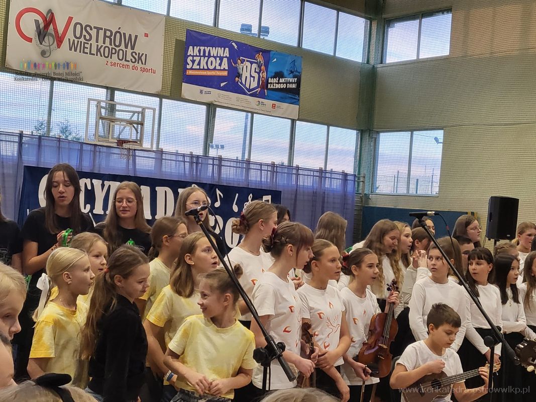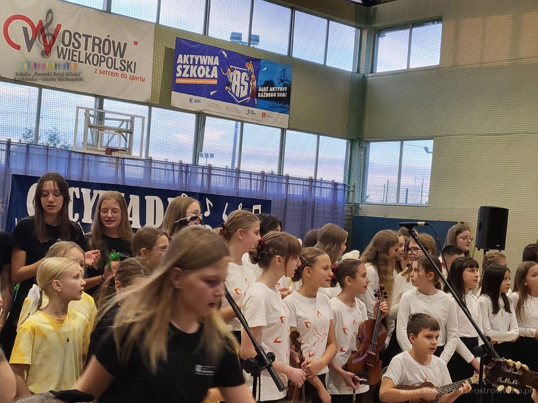 21 listopada w Szkole Podstawowej nr 6 w Ostrowie Wielkopolskim odbyły się zmagania w trzech kategoriach: solistów klas 1-4, solistów klas 5-8 oraz zespołów wokalnych i wokalno – instrumentalnych. Zmagania schol odbyły się w drugim dniu konkursu w parafii Matki Bożej Częstochowskiej w Ostrowie Wielkopolskim. Nasza scholka wystąpiła w gronie wykonawców z 33 miejscowości, mierząc się z bardzo wysokim poziomem artystycznym ocenianym przez specjalnie powołaną komisje. Udział „Promyków Bożej Miłości” był nie tylko rywalizacją muzyczną, ale przede wszystkim formą radosnej modlitwy, uwielbienia Stwórcy oraz okazją do budowania relacji z innymi zespołami w duchu wzajemnego wsparcia.