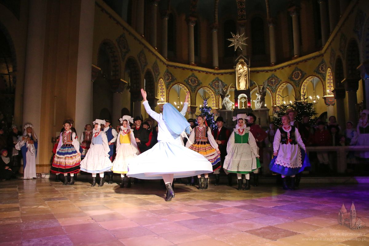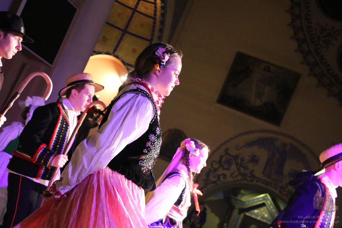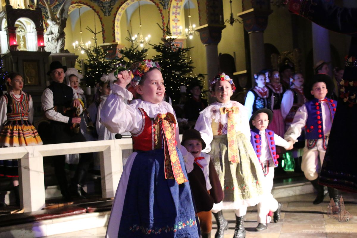 W Konkatedrze – w wyjątkowym programie artystycznym „Tańcem chwalmy Pana” – zaprezentował się Zespół Tańca Ludowego „Swojacy”. W występie połączyli piękno tradycyjnych kolęd z muzyką i tańcem, tworząc podniosłą, a zarazem radosną atmosferę wspólnego kolędowania. „Swojacy” przypomnieli o bogactwie tradycji Bożonarodzeniowych i ich głębokim duchowym znaczeniu.