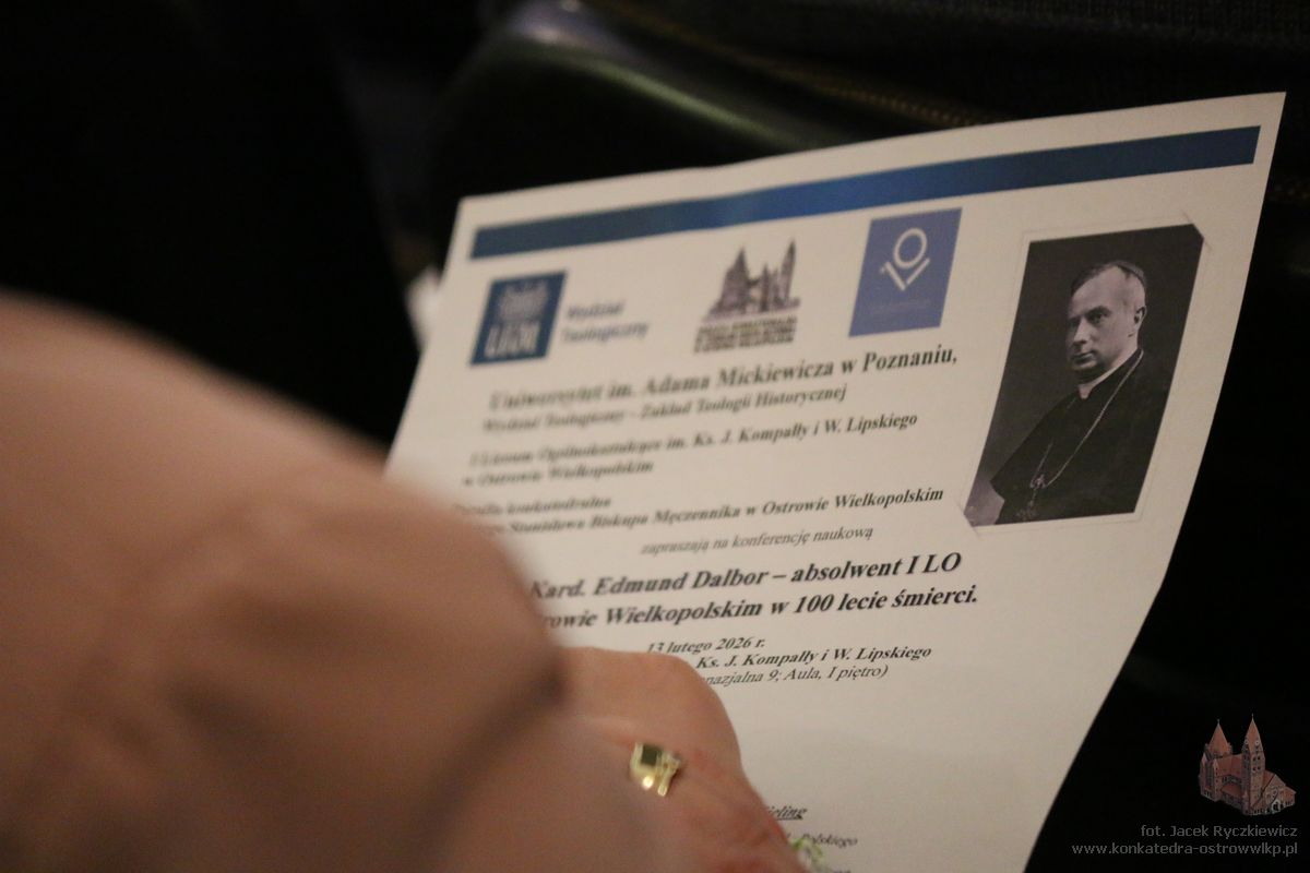 W piątek, 13 lutego 2026 roku, w auli I Liceum Ogólnokształcącego odbyła się konferencja naukowa poświęcona setnej rocznicy śmierci ks. kard. Edmunda Dalbora – wybitnego syna tej ziemi, honorowego obywatela miasta (1923), absolwenta ostrowskiego Gimnazjum, pierwszego Prymasa odrodzonej po latach zaborów Polski oraz Arcybiskupa Gnieźnieńskiego i Poznańskiego w latach 1915–1926.