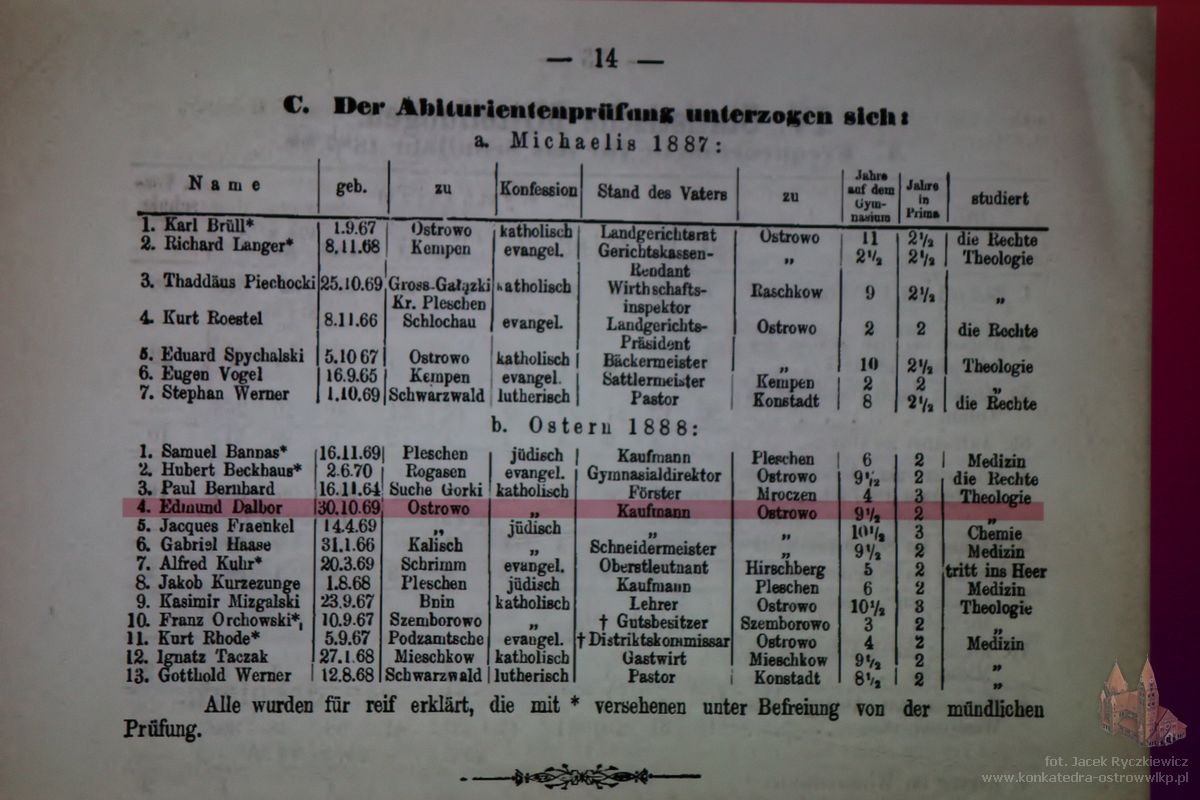 - mgr Piotr Grabarz – „Edmund Dalbor – z Ostrowa do Rzymu. Młodość, edukacja i droga do kapłaństwa”,