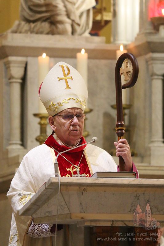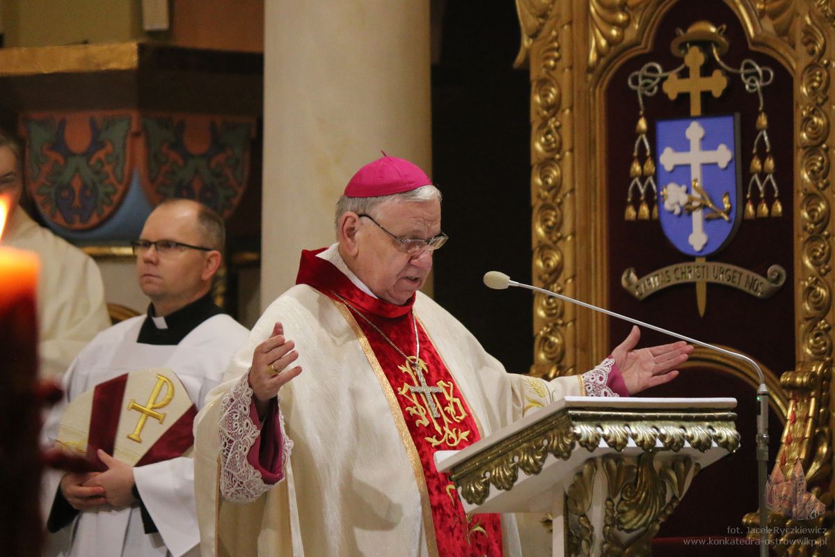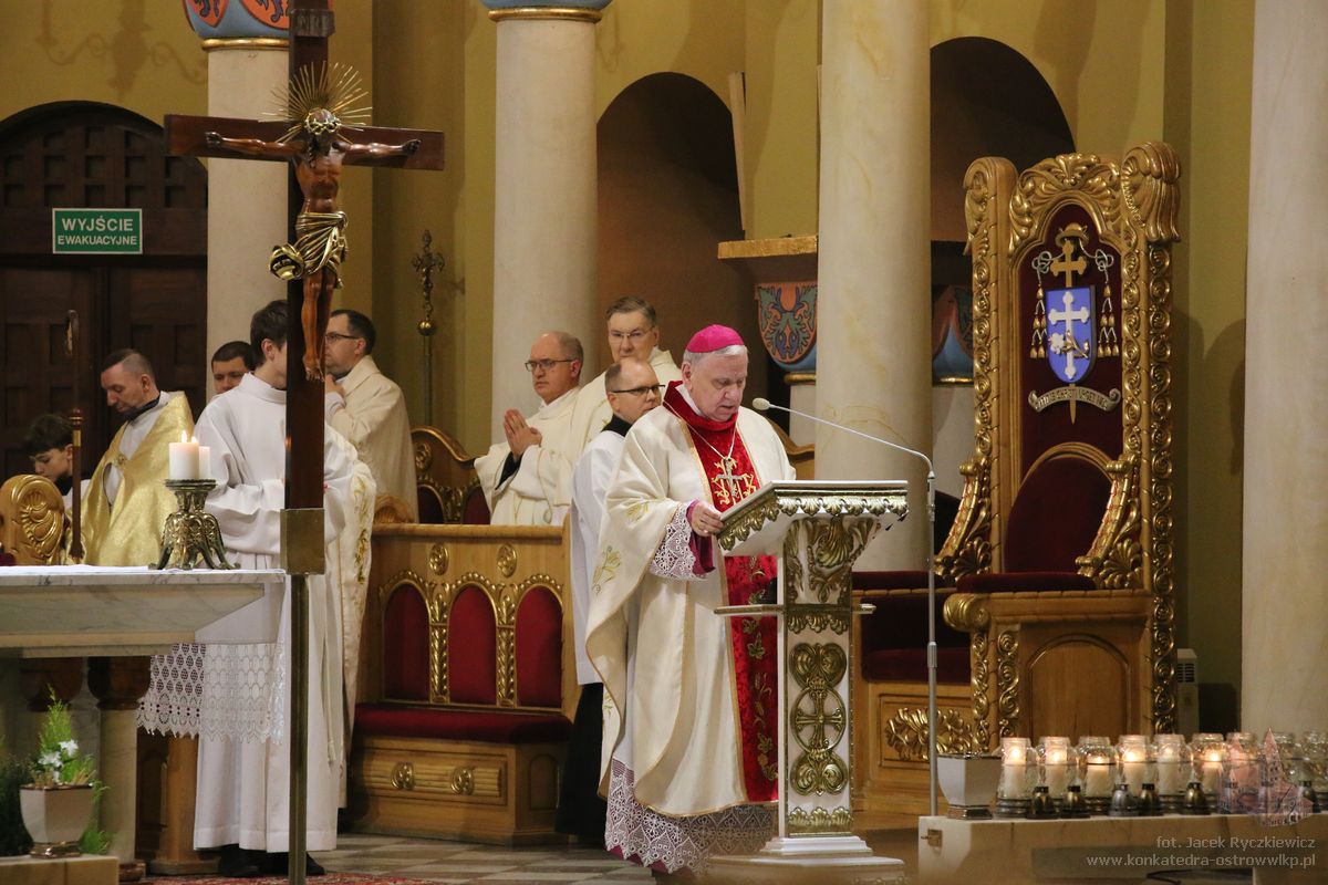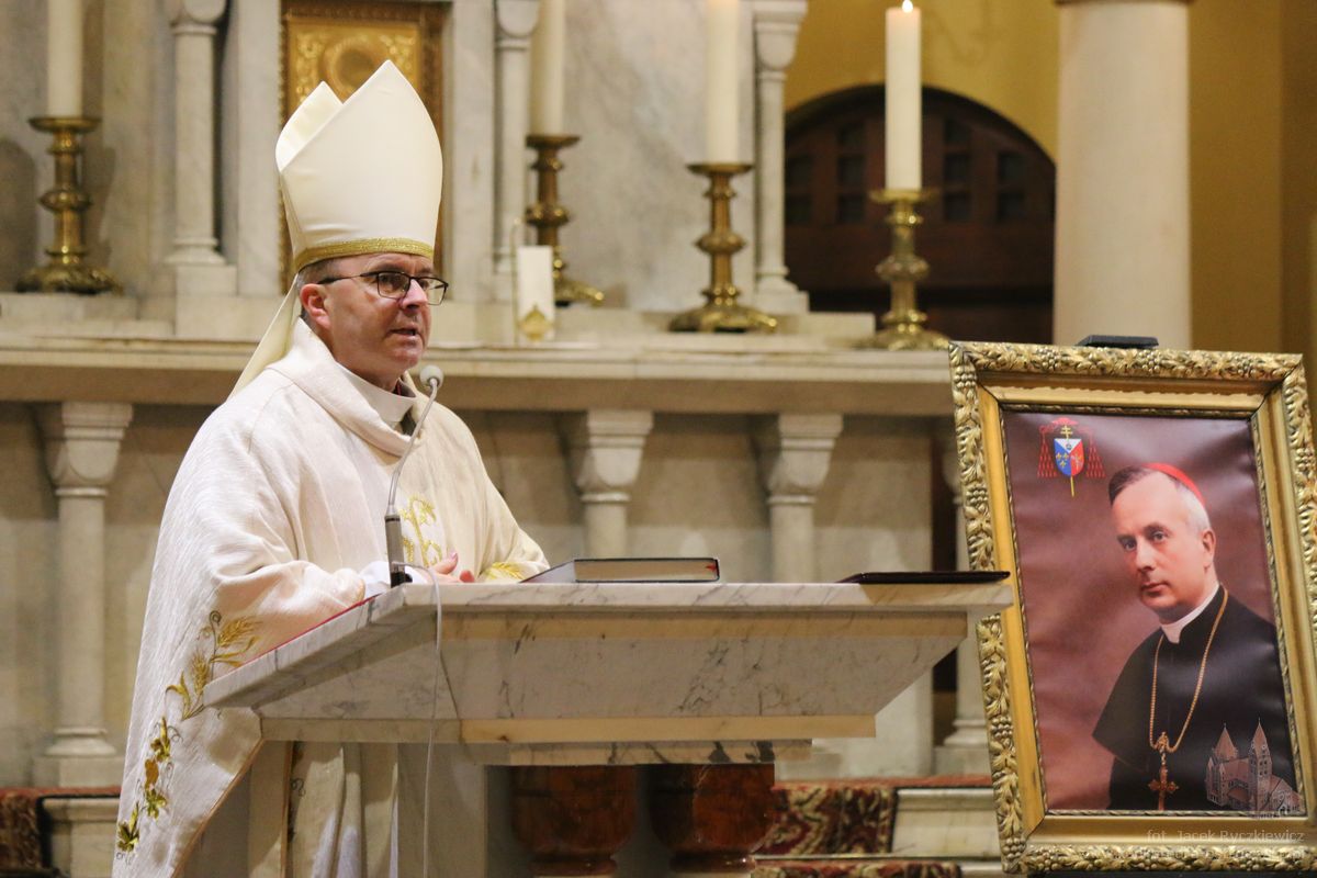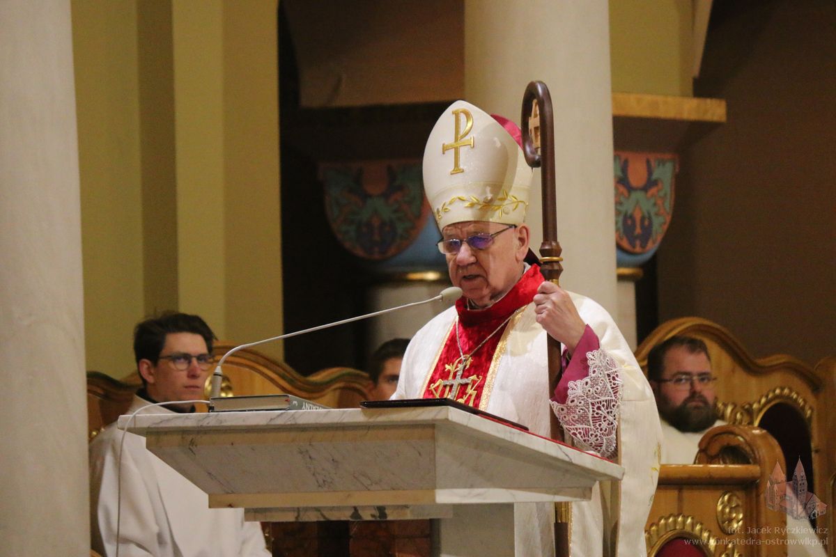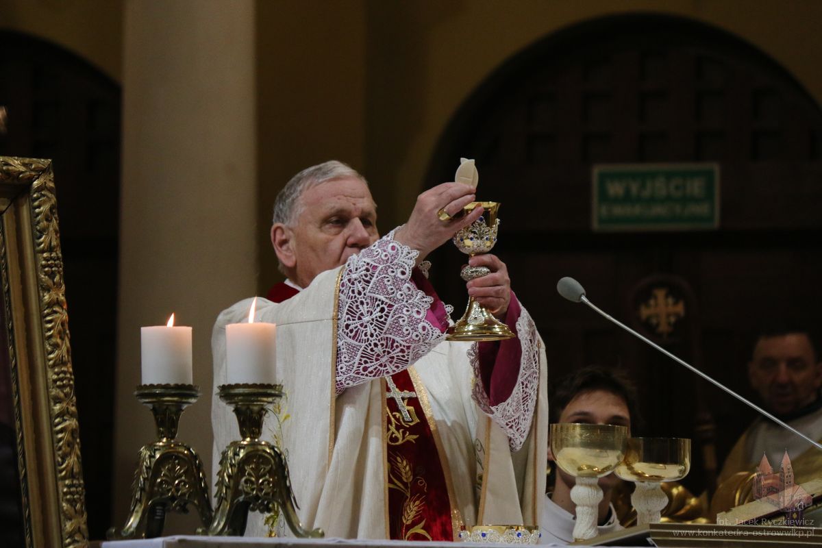 – Cieszymy się, nie ukrywam z całego serca, że rodzinne miasto zgasłego sto lat temu Prymasa Edmunda Dalbora dziś serdecznie pamięta o nim, by dotrzeć przez naszą refleksję i przez naszą zachętę do wdzięcznych pokładów naszych serc – mówił emerytowany biskup gliwicki. Podkreślił, że pamięć o wielkich pasterzach Kościoła jest nie tylko wspomnieniem historycznym, lecz przede wszystkim zobowiązaniem duchowym. przypomniał, że wartość ludzkiego życia mierzy się służbą drugiemu człowiekowi oraz pracą dla dobra wspólnoty. – Bez tej pracy, bez jej wyników może byśmy jej, ludzie, nie zauważyli. Ale skoro się przyczyniają oni do naszej pomyślności pod każdym względem, wspominamy ich, trwając na modlitwie przed obliczem dobrego Pana – mówił biskup Jan. Zaznaczył, że wszyscy kapłani i biskupi są zobowiązani do jedności z Chrystusem i wiernego wypełniania zadań, które On powierza swojemu Kościołowi.– Pan Jezus wyraźnie ukazał taką perspektywę. Należy nam zbliżyć się do Niego, podjąć zadania, jakie On, Zbawiciel, nam wyznaczył, i tym obdarowywać siebie wzajemnie na różny sposób – powiedział. Biskup Kopiec wskazywał, że sens ludzkiego życia dokonuje się w jedności ze Zbawicielem.– To w pełni oznacza przylgnięcie do naszego Pana, swoją wolę złączyć z Jego nadprzyrodzonymi oczekiwaniami. Bowiem zbawienie i sens naszego życia dokonują się właśnie w tej jedności – wskazywał. Jako przykład wierności powołaniu, odwagi i odpowiedzialności za Kościół oraz Ojczyznę biskup Jan wskazywał na postać ks. kard. Edmunda Dalbora, który z małej, lokalnej, ostrowskiej wspólnoty, stał się duchowym przewodnikiem całego narodu w czasie odbudowy niepodległej Polski.– Jego życie, jego droga, jego służba Kościołowi i Ojczyźnie pokazują nam, jak wielkie rzeczy mogą wyrastać z prostych, lokalnych korzeni – mówił. Zachęcał, aby pamięć o Prymasie nie ograniczała się do wspomnień, lecz stała się inspiracją do codziennej służby Bogu i ludziom, troski o wiarę, Kościół i dobro wspólne. – To zobowiązuje. Zobowiązuje do wdzięczności, do modlitwy, ale także do naśladowania. Bo pamięć o takich ludziach nie może być jedynie wspomnieniem historycznym. Ona powinna stać się inspiracją do naszego codziennego życia, do troski o wiarę, o Kościół, o dobro wspólne – powiedział biskup Jan.