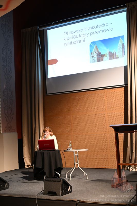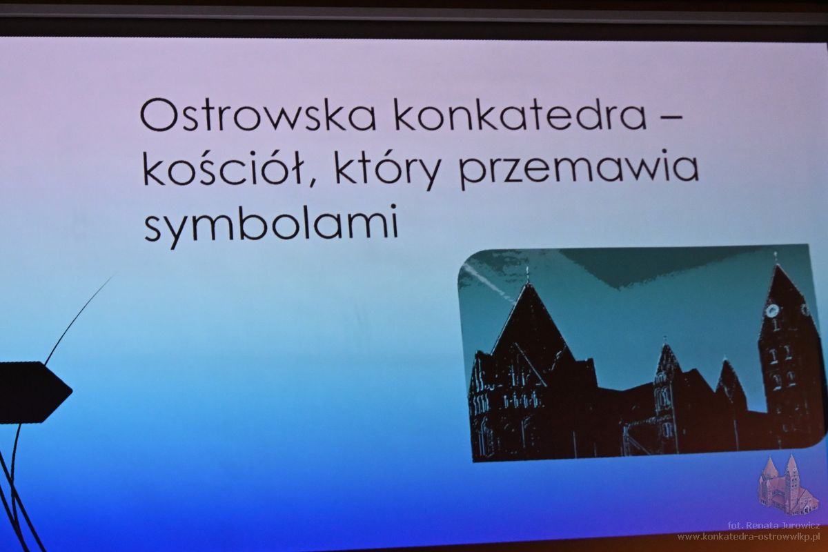 W piątkowy wieczór w Forum Synagoga odbył się wykład „Ostrowska konkatedra – kościół, który przemawia symbolami” naszej parafianki, doktor Justyny Sprutty, historyka sztuki. Spotkanie poświęcone było znaczeniu symboli obecnych w Ostrowskiej Konkatedrze i wzbogacone prezentacją fotografii jej wnętrza. Wydarzenie zorganizowano w ramach cyklu „Skarbiec kultury”, organizowanego przez Ostrowskie Centrum Kultury.