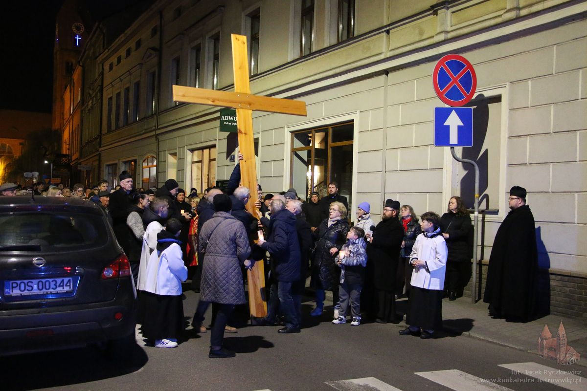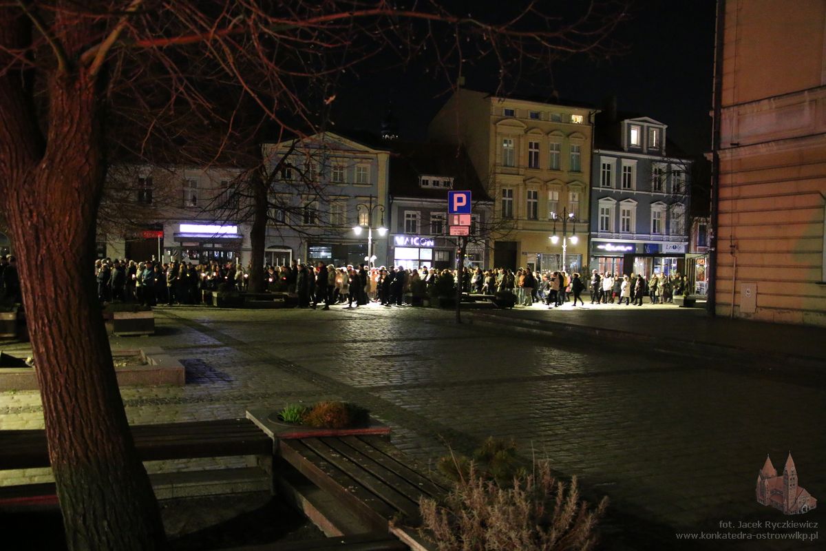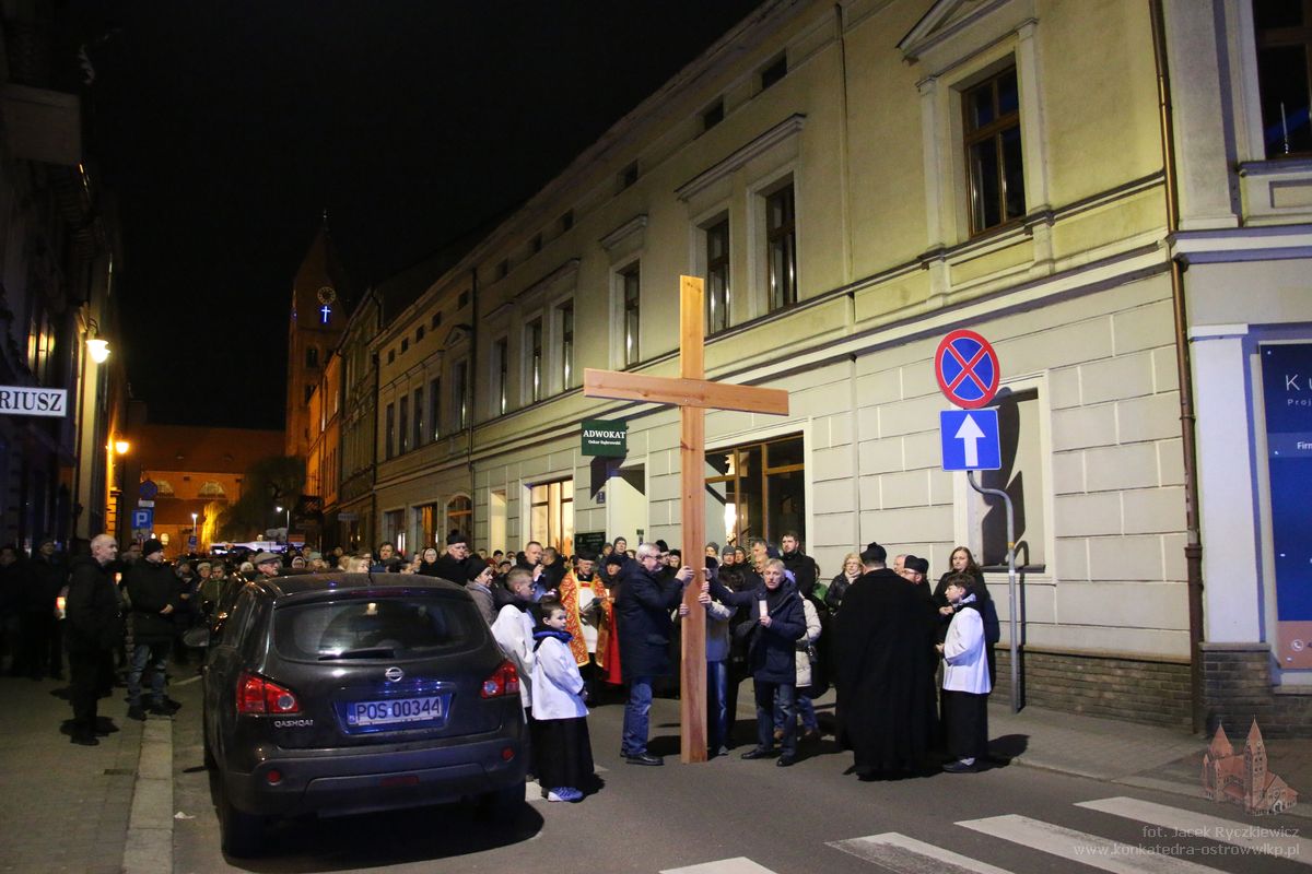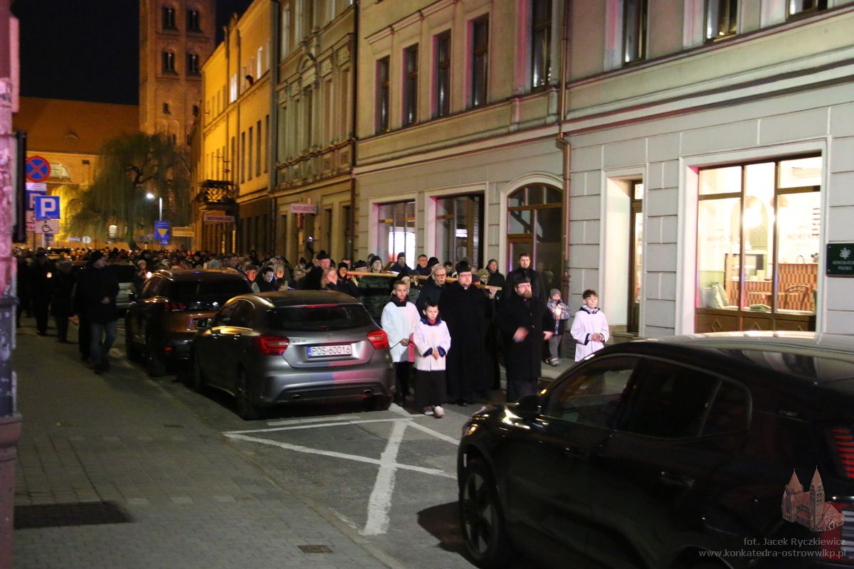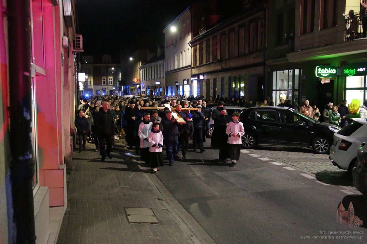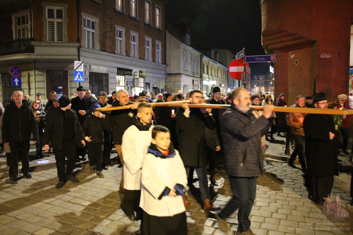 Po raz kolejny mieszkańcy Ostrowa przeszli ulicami miasta w drodze krzyżowej. O godz. 19.30 z Konkatedry wyruszyli ulicami Sądową, Kaliską przez Rynek, Wrocławską i Wiosny Ludów, by powrócić do świątyni. Krzyż nieśli przedstawiciele każdej z ostrowskich parafii, kapłani, siostry zakonne oraz reprezentanci wspólnoty Wojowników Maryi oraz Serce Kecharitomene.