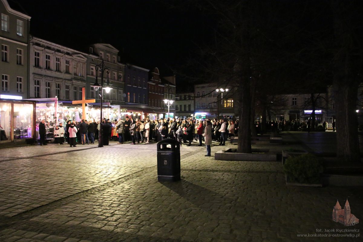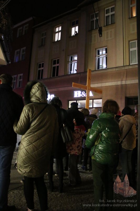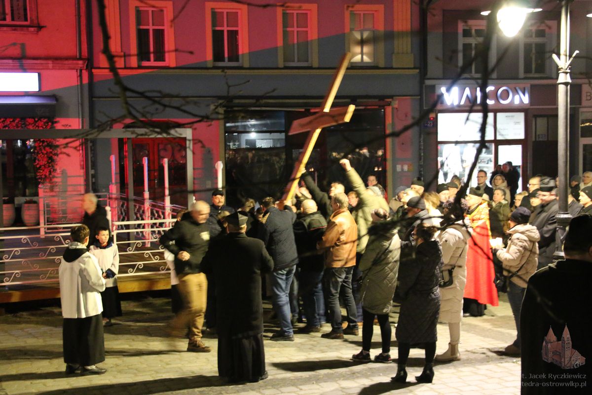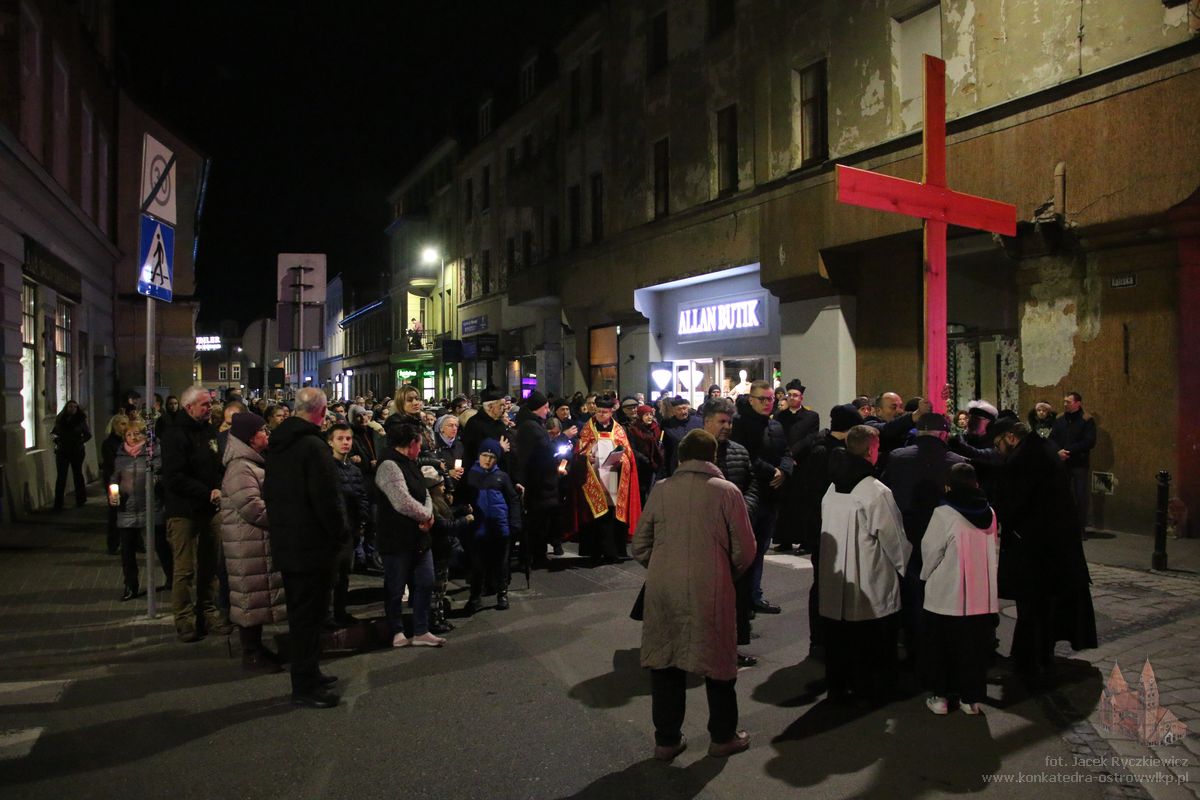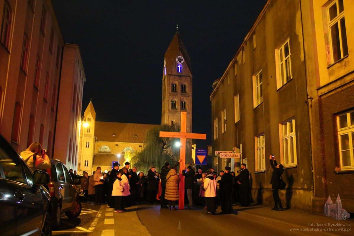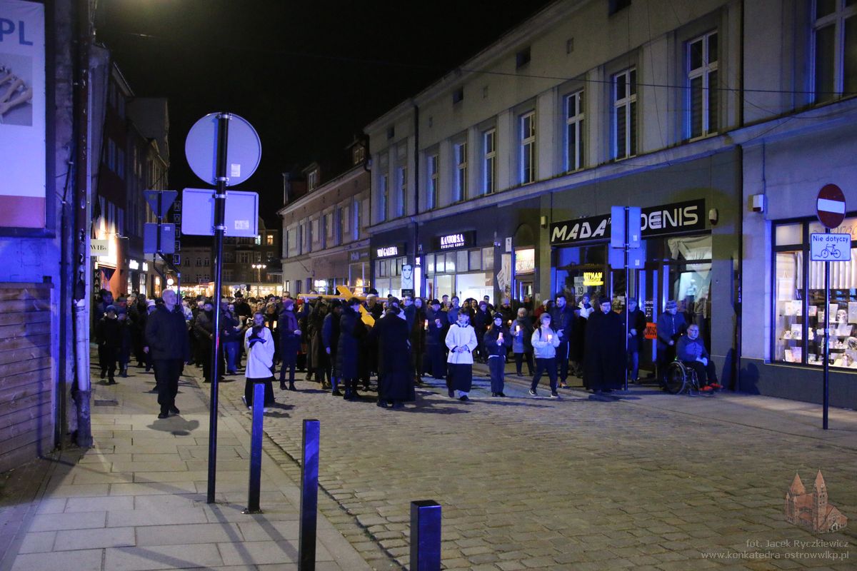 Po raz kolejny mieszkańcy Ostrowa przeszli ulicami miasta w drodze krzyżowej. O godz. 19.30 z Konkatedry wyruszyli ulicami Sądową, Kaliską przez Rynek, Wrocławską i Wiosny Ludów, by powrócić do świątyni. Krzyż nieśli przedstawiciele każdej z ostrowskich parafii, kapłani, siostry zakonne oraz reprezentanci wspólnoty Wojowników Maryi oraz Serce Kecharitomene.