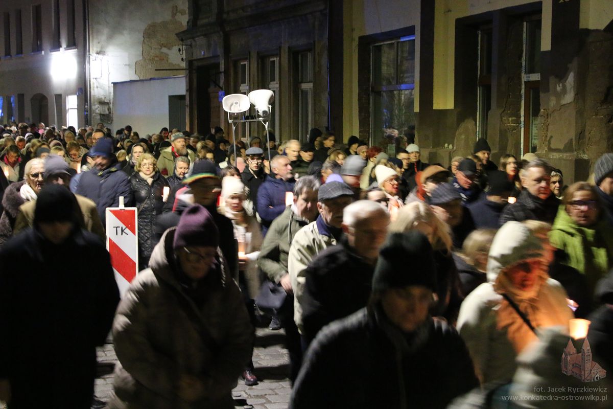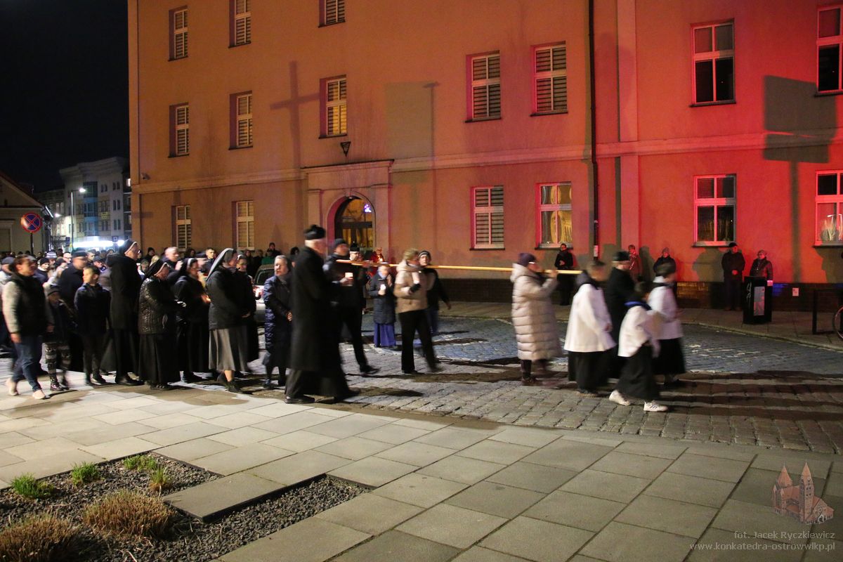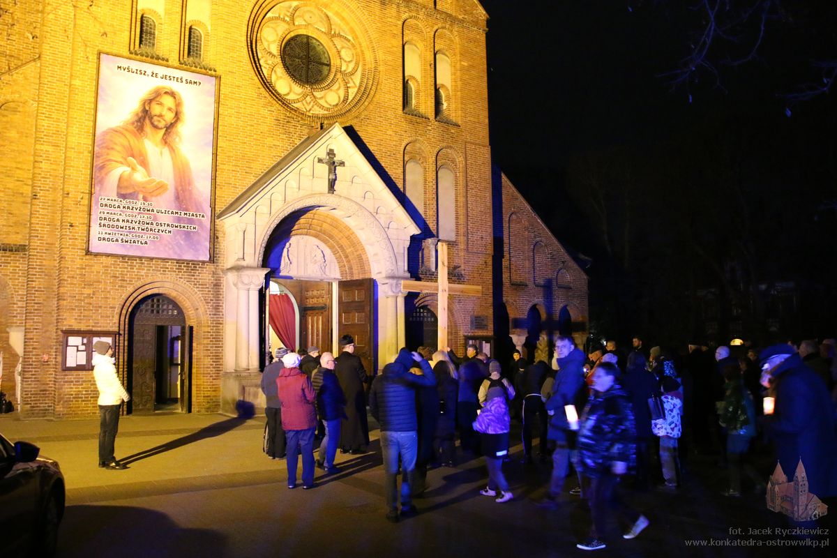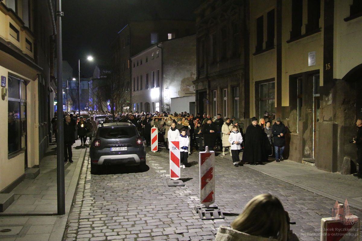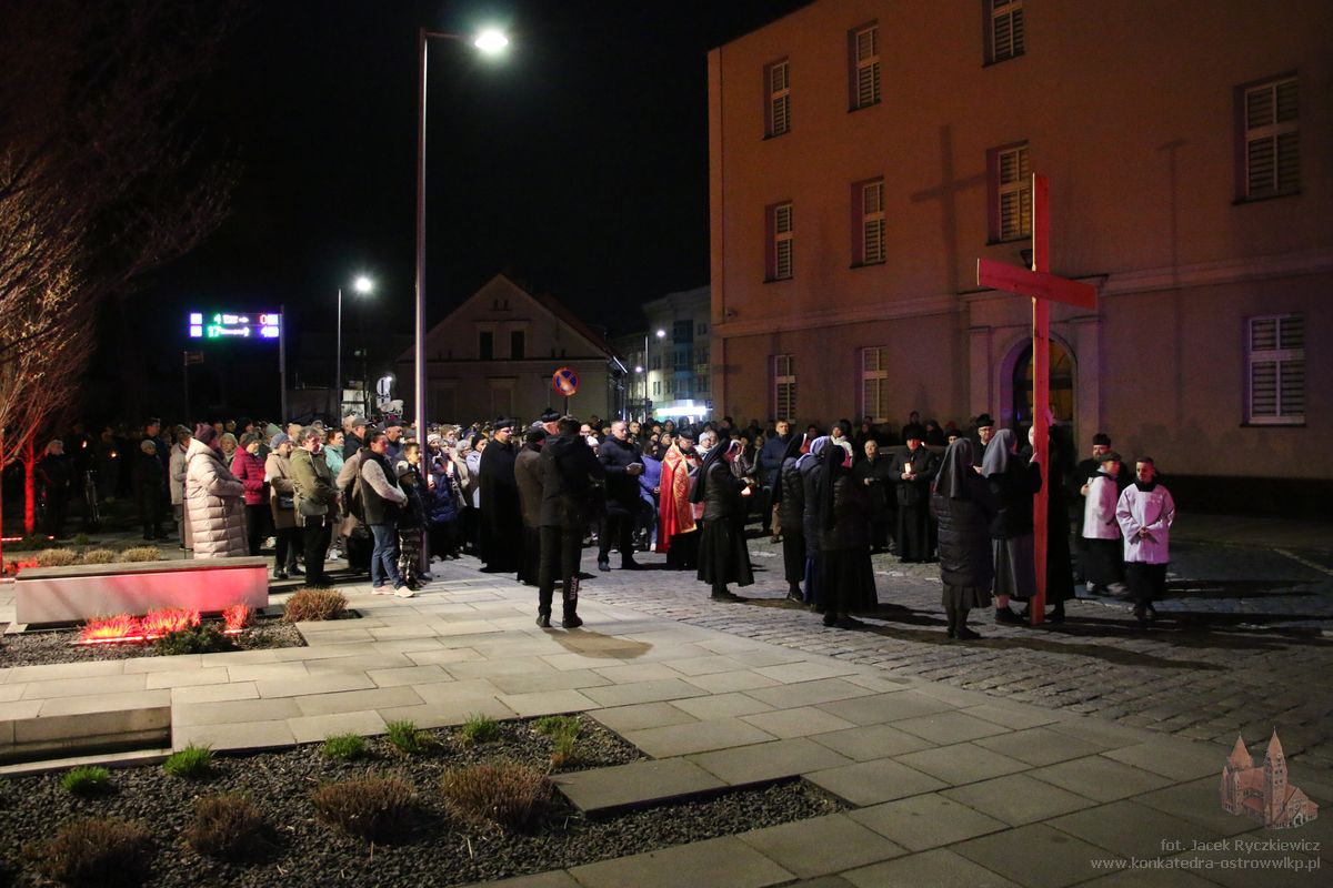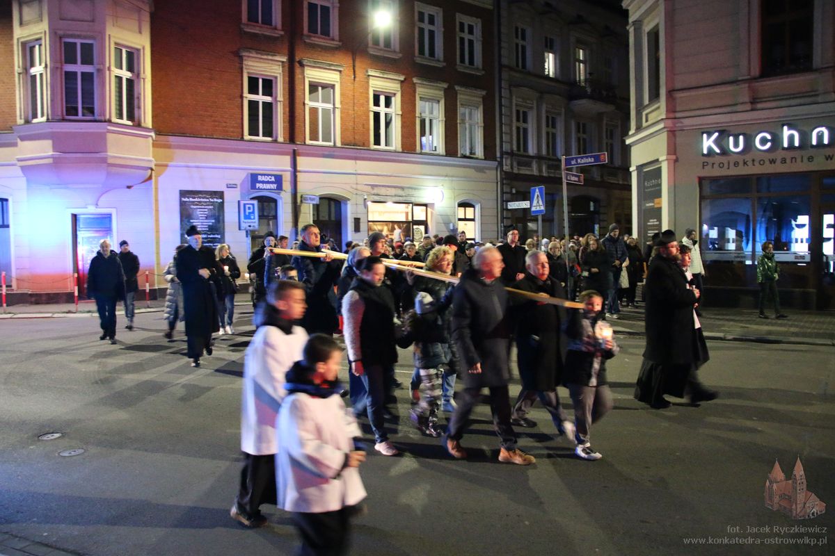 Po raz kolejny mieszkańcy Ostrowa przeszli ulicami miasta w drodze krzyżowej. O godz. 19.30 z Konkatedry wyruszyli ulicami Sądową, Kaliską przez Rynek, Wrocławską i Wiosny Ludów, by powrócić do świątyni. Krzyż nieśli przedstawiciele każdej z ostrowskich parafii, kapłani, siostry zakonne oraz reprezentanci wspólnoty Wojowników Maryi oraz Serce Kecharitomene.