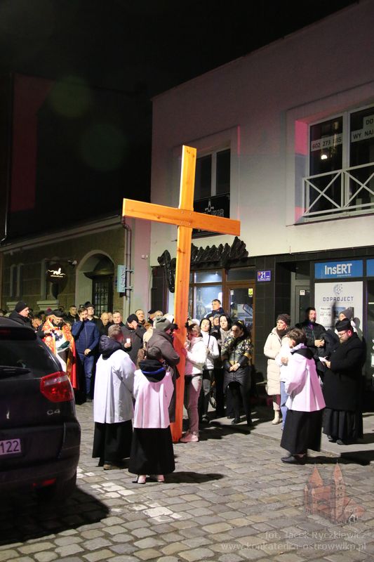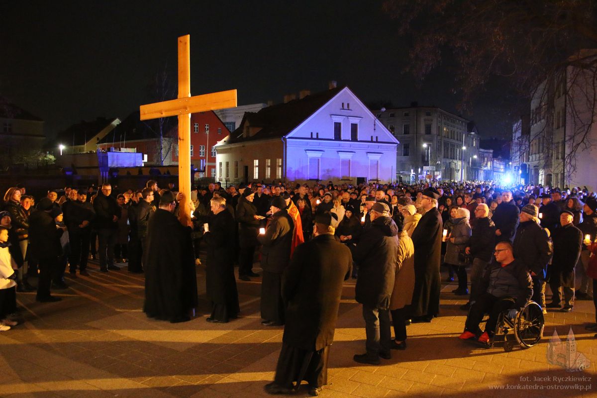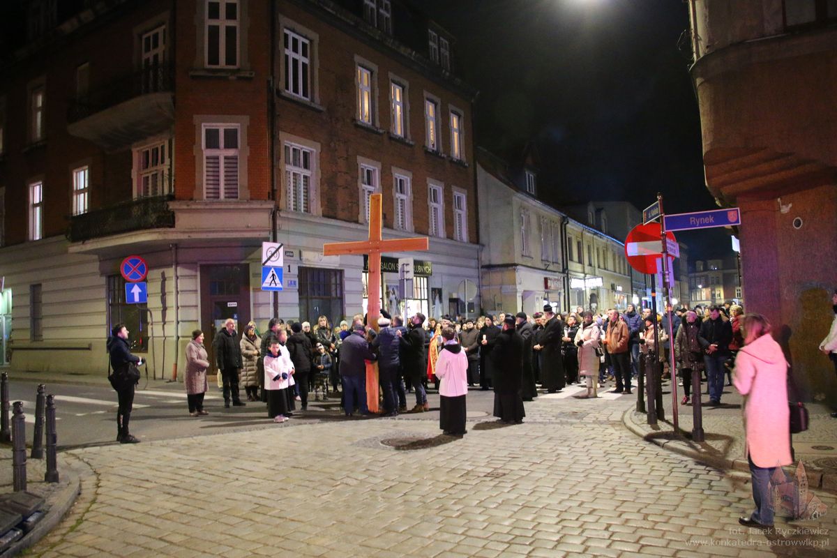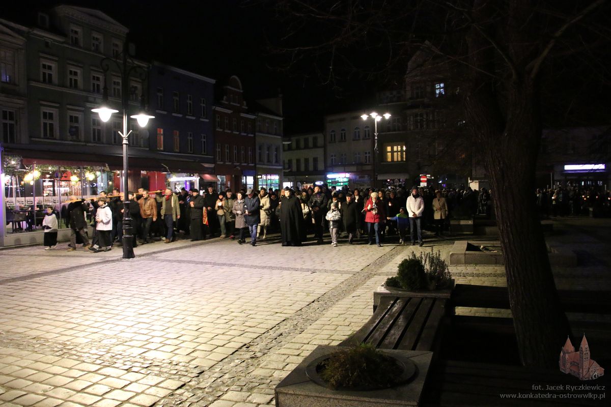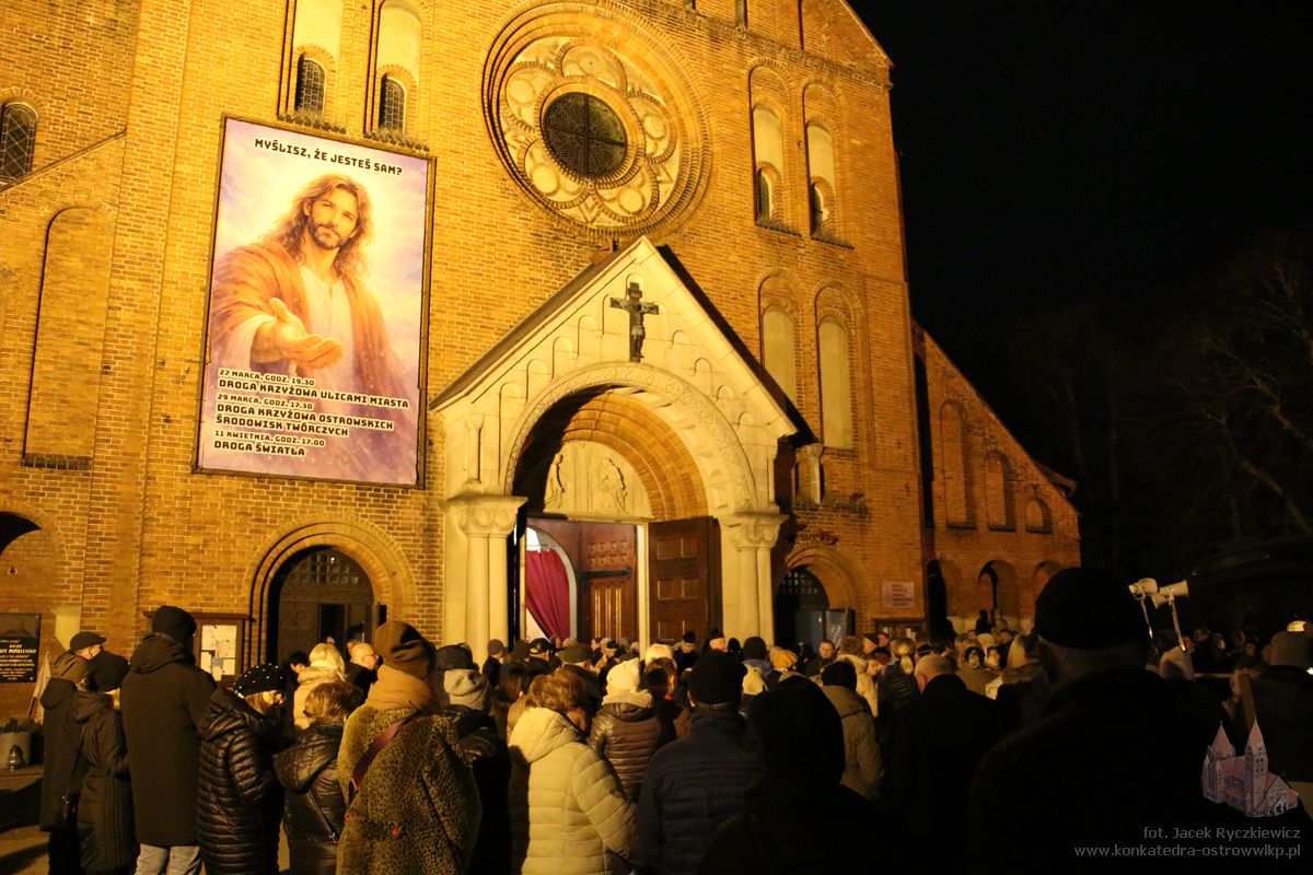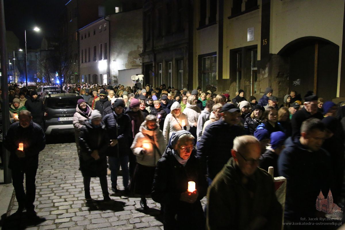 Po raz kolejny mieszkańcy Ostrowa przeszli ulicami miasta w drodze krzyżowej. O godz. 19.30 z Konkatedry wyruszyli ulicami Sądową, Kaliską przez Rynek, Wrocławską i Wiosny Ludów, by powrócić do świątyni. Krzyż nieśli przedstawiciele każdej z ostrowskich parafii, kapłani, siostry zakonne oraz reprezentanci wspólnoty Wojowników Maryi oraz Serce Kecharitomene.