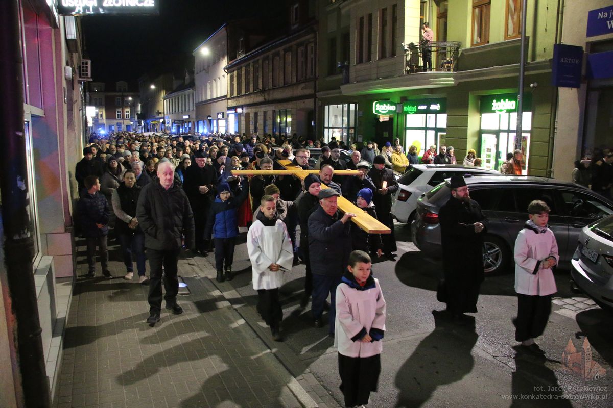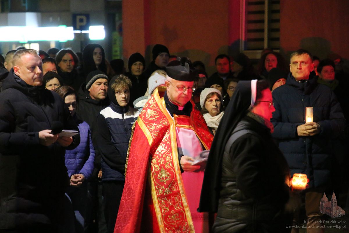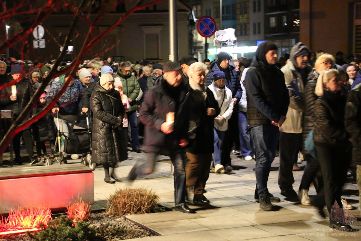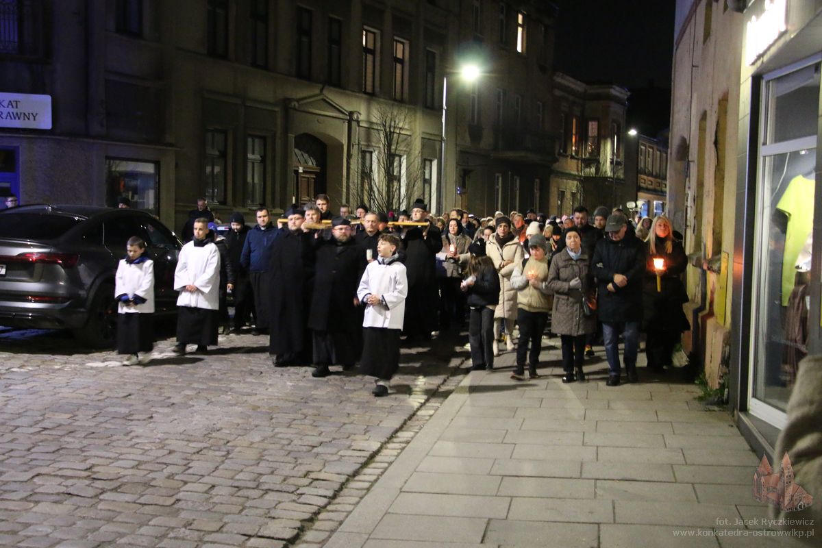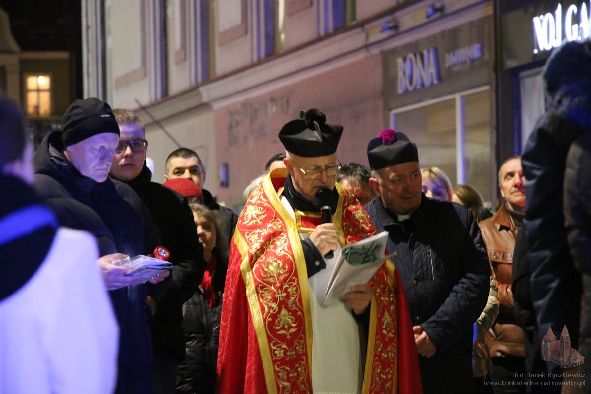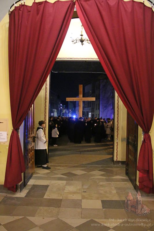 Po raz kolejny mieszkańcy Ostrowa przeszli ulicami miasta w drodze krzyżowej. O godz. 19.30 z Konkatedry wyruszyli ulicami Sądową, Kaliską przez Rynek, Wrocławską i Wiosny Ludów, by powrócić do świątyni. Krzyż nieśli przedstawiciele każdej z ostrowskich parafii, kapłani, siostry zakonne oraz reprezentanci wspólnoty Wojowników Maryi oraz Serce Kecharitomene.