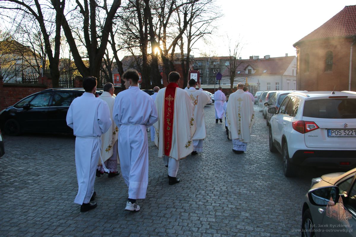 Podczas Mszy Świętej wierni przyjęli Komunię Świętą pod dwiema postaciami, a po jej zakończeniu Najświętszy Sakrament został przeniesiony do tzw. „Ciemnicy”. Procesja odbyła się w skupieniu i ciszy, przy dźwiękach kołatek, co podkreślało nastrój zadumy i rozpoczęcie przeżywania męki Chrystusa. Ołtarz został ogołocony, a tabernakulum pozostało puste – na znak pojmania Jezusa.
