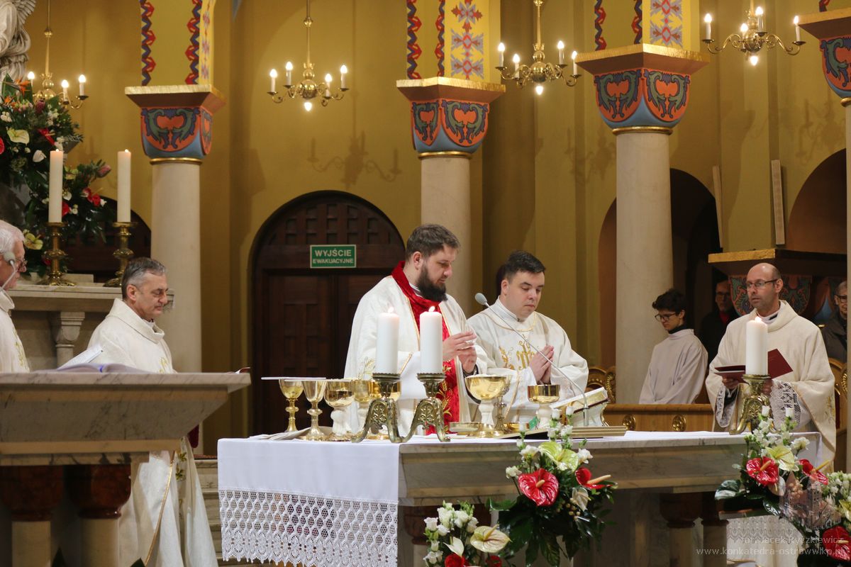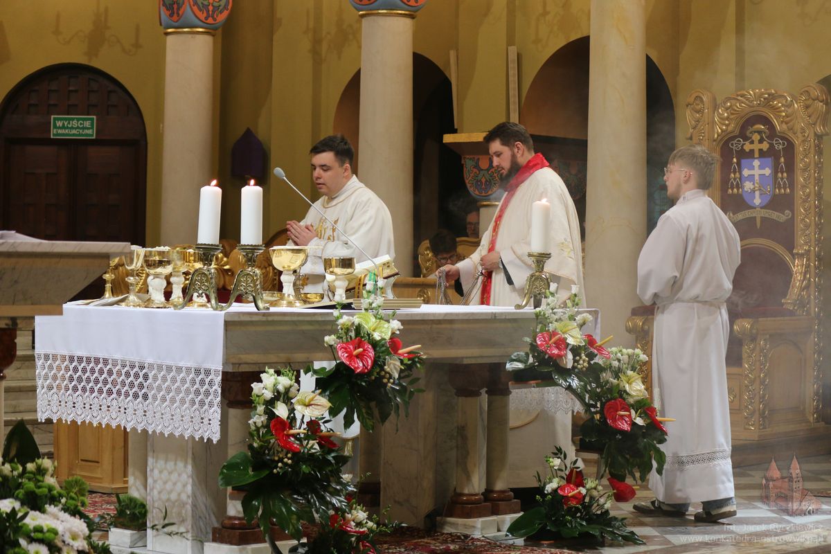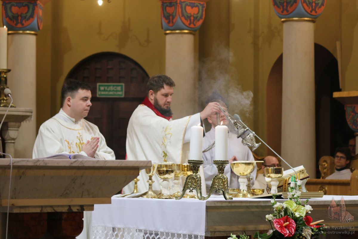Liturgia rozpoczęła się od uroczystego procesyjnego wejścia do świątyni. Eucharystii przewodniczył ks. Łukasz Urban, z którym modlił się ks. Proboszcz Adam Kosmała, ks. Dominik Wieczorek i ks. prał. Tomasz Ilski. Centralnym momentem celebracji była Liturgia Słowa, która wprowadzała w głębię wydarzeń paschalnych i ukazywała sens ofiary Chrystusa oraz dar Eucharystii.